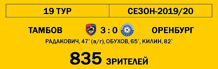 Сама игра поначалу тоже не очень-то располагала к просмотру. К перерыву команды создали незначительное количество моментов, которые предсказуемо не завершились голами. Зато со стартом второй половины матча «Тамбову» вдруг начало везти по-крупному. Прострел Мелкадзе (самого активного из хозяев) срезал в свои ворота защитник гостей Радакович. А пять минут спустя еще один игрок обороны «Оренбурга», Георгий Зотов, покинул поле за вторую желтую карточку. Оставшись в большинстве, хозяева смогли довести дело до крупной победы. И здесь не обошлось без удачи: Обухов отличился благодаря рикошету, а Килин – после чудовищной позиционной ошибки защитников «Оренбурга», которые не смогли организовать искусственный офсайд. Ассистентом в обоих случаях выступил все тот же Мелкадзе. К тому же поймал кураж голкипер хозяев Шелия, в итоге оставивший свои ворота на замке. Стоит жалеть лишь об одном – что большинство тамбовских болельщиков смогли увидеть эту яркую победу своей команды исключительно по телевизору.