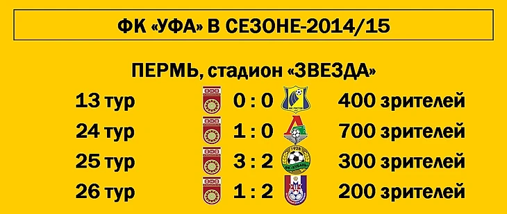 Вы спросите: а куда делся еще один, пятнадцатый домашний матч «Уфы»? Заключительную игру сезона в качестве хозяев уфимцы сыграли в Санкт-Петербурге на стадионе «Петровский». Дело в том, что матч с «Уфой» почти наверняка становился для «Зенита» чемпионским, и питерцы хотели отпраздновать это событие при своих болельщиках, а не на пустых трибунах в Перми или Саранске. В результате было принято взаимовыгодное решение: матч был проведен в Санкт-Петербурге, а вся выручка от проданных билетов (матч посетили почти 17 тысяч зрителей) пошла «Уфе» как номинальным хозяевам. Результат матча тоже получился компромиссным: ничья 1:1, которая устроила обе стороны.