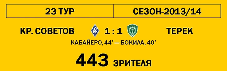 Хотя обе команды решали задачу по сохранению прописки в Премьер-Лиге, никто не торопился форсировать события. Поэтому со стороны зрелище скорее напоминало предсезонный матч, нежели игру Высшего российского дивизиона. А все основные события игры уместились в концовке первого тайма. Хотя Казань только-только приходила в себя после зимней спячки, результативными действиями в составе обеих команд отметились легионеры из дальнего зарубежья. На точный кивок головы в исполнении грозненского конголезца Бокила красивым дальним выстрелом ответил самарский парагваец Кабайеро. (Интересно, кто-нибудь еще помнит о таких футболистах в нашем чемпионате?)