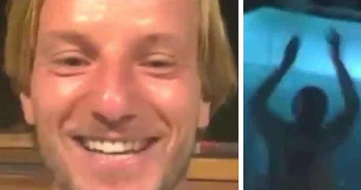 Ракитич был запечатлен прыгающим в бассейн после того, как его бывшая команда обыграла "Интер" 3:2 и выиграла Лигу Европы в шестой раз в своей истории.