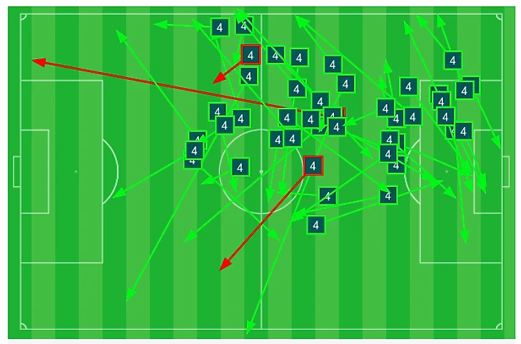 В этой ЛЧ команда Тухеля впечатлила давлением, которое без мяча оказывает звездная тройка Неймар-Мбаппе-Ди Мария. После потери Боатенга могло показаться, что «Бавария» уязвима перед этим прессингом, но Зюле сделал все, чтобы замену центрального защитника никто не заметил. Партнеры активно делились с ним мячом – 46 касаний за 75 минут на поле (если что, за этот же отрезок у Алабы 43), Зюле отвечал качеством паса (процент точности – 93%, всего 43 передачи). Если думаете, что это были простые пасы ближнему, просто посмотрите на эту карту.
