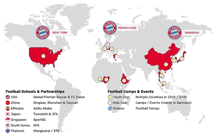 Бавария открывает футбольные школы по всему миру, организовывает спортивные лагеря и проводит юношеские турниры. Такие школы уже есть или строятся в США, Китае, Эфиопии, Японии, Сингапуре и Южной Корее. Целью клуб ставит распространение знаний и внедрение философии, в которой отражаются главные ценности клуба: уважение, амбициозность, честная игра и командный дух.