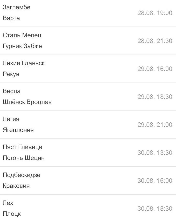 Единственным новичком набравшим очки стала мелецкая "Сталь", сыгравшая вничью с "Вислой Плоцк" 1:1. Гости была даже ближе к итоговой победе, но "Висла" хладнокровно дождалась своего шанса. На 55 минуте "Сталь" вышла вперёд после двойного спасения вратаря гостей и добивания сербского полузащитника Андрея Прокича. На 88 минуте мельчане могли закончить вообще всё и наказать оборону "нефтяников" за излишнюю инфантильность (дали игроку гостей протащить мяч, обыграть себя на ложном замахе, упасть, в подкате отобрать мяч и покатить его на набегавшего в штрафную игрока), но просто потрясающе сыграл голкипер. А на 89 минуте после подачи с фланга отличился Матеуш Швох и спас свою команду от поражения. Очень интересно будет взглянуть на "Сталь" в будущем поединке с "Гурником". Ещё одна самобытная и симпатичная команда.