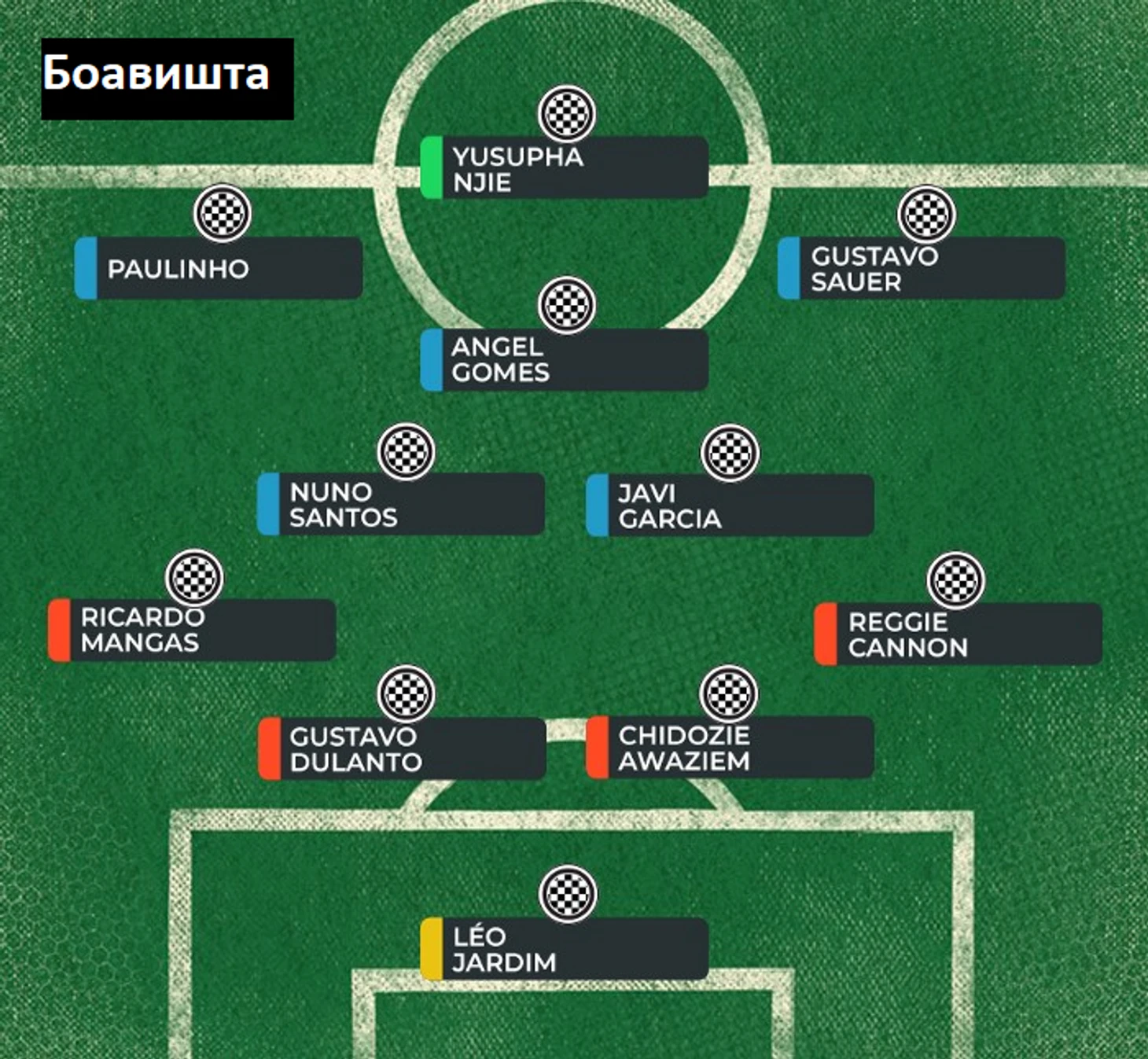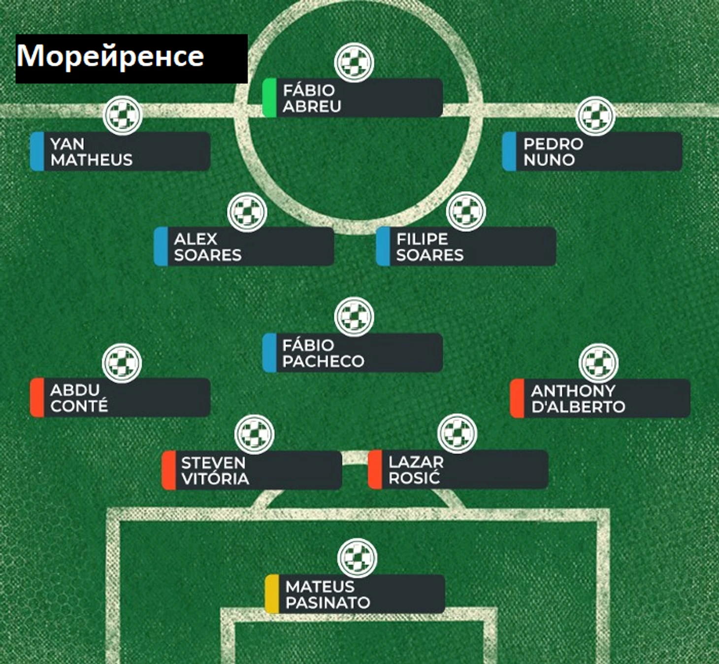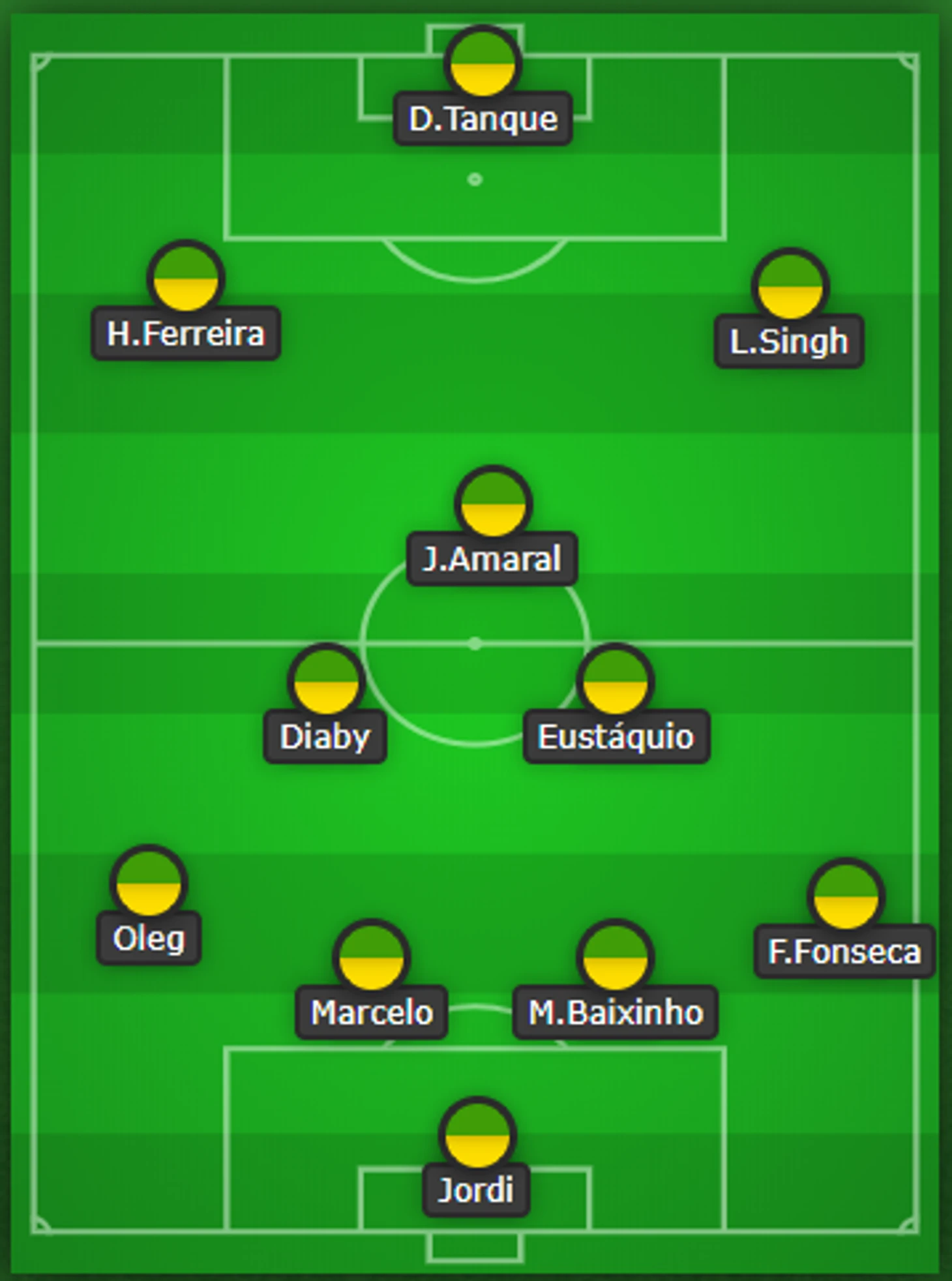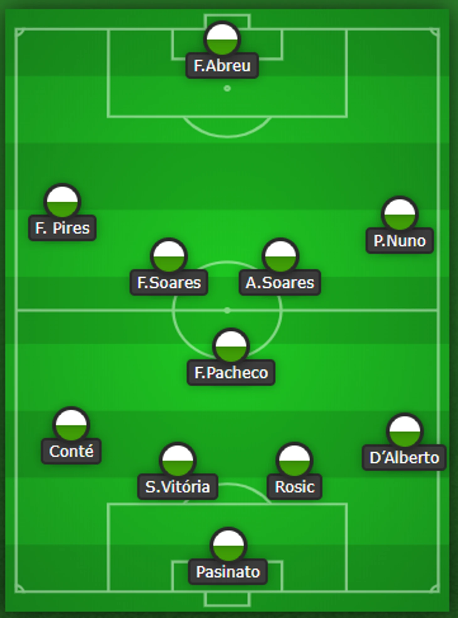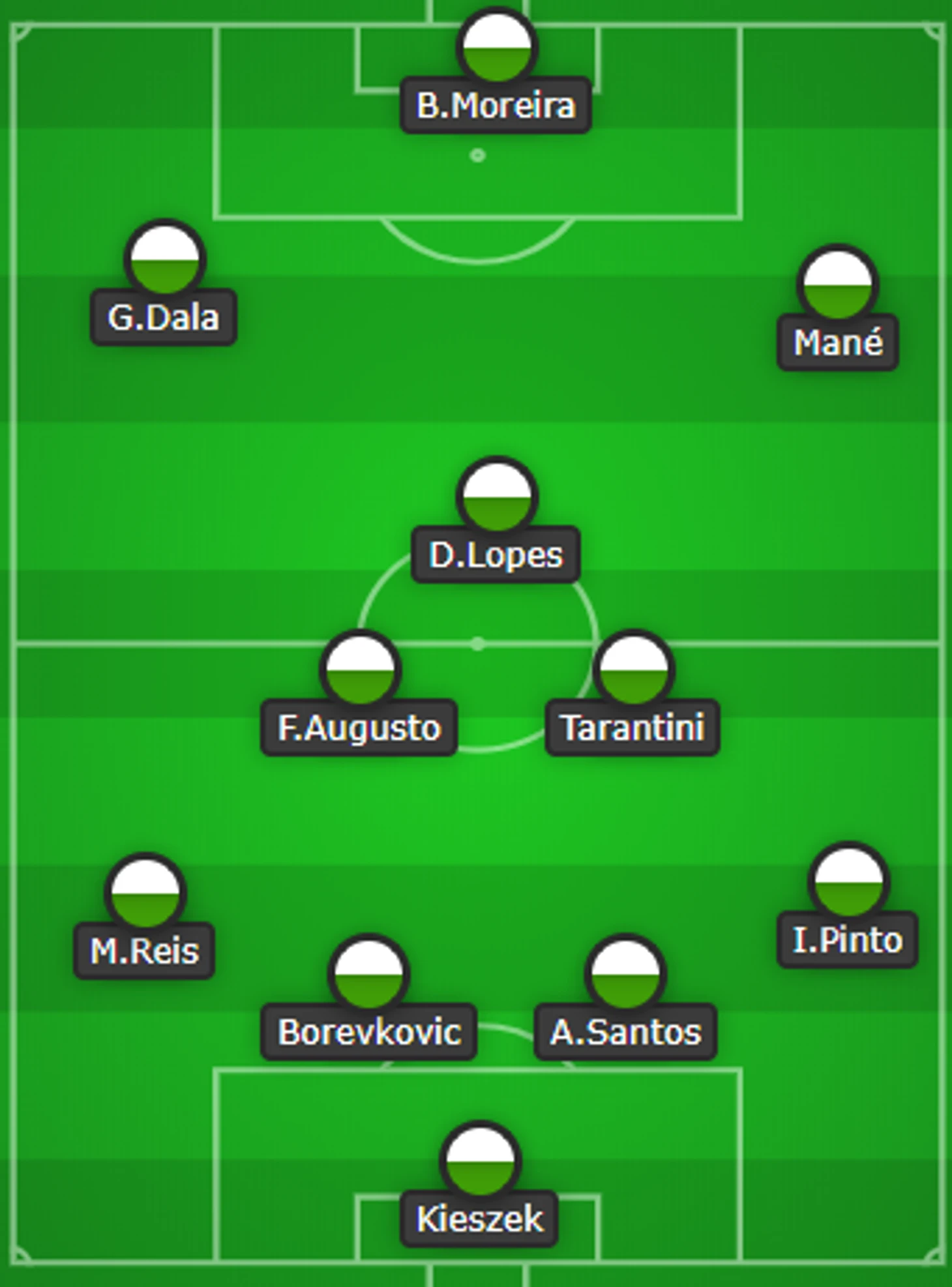 Не всё просто в полузащите. Вендел (7.0) - хороший игрок. Но есть вероятность, что ему придётся волнорезить и много. Помогать разгонять атаки ему может Матеус Луис Нуньес (6.0). Очень близки к попаданию в старт вингеры Нуну Сантуш (7.5), отлично проявивший себя в Риу Аве, сделав там 2+6 и Жоване Кабрал (8.0), настучавший в Спортинге 6+3.