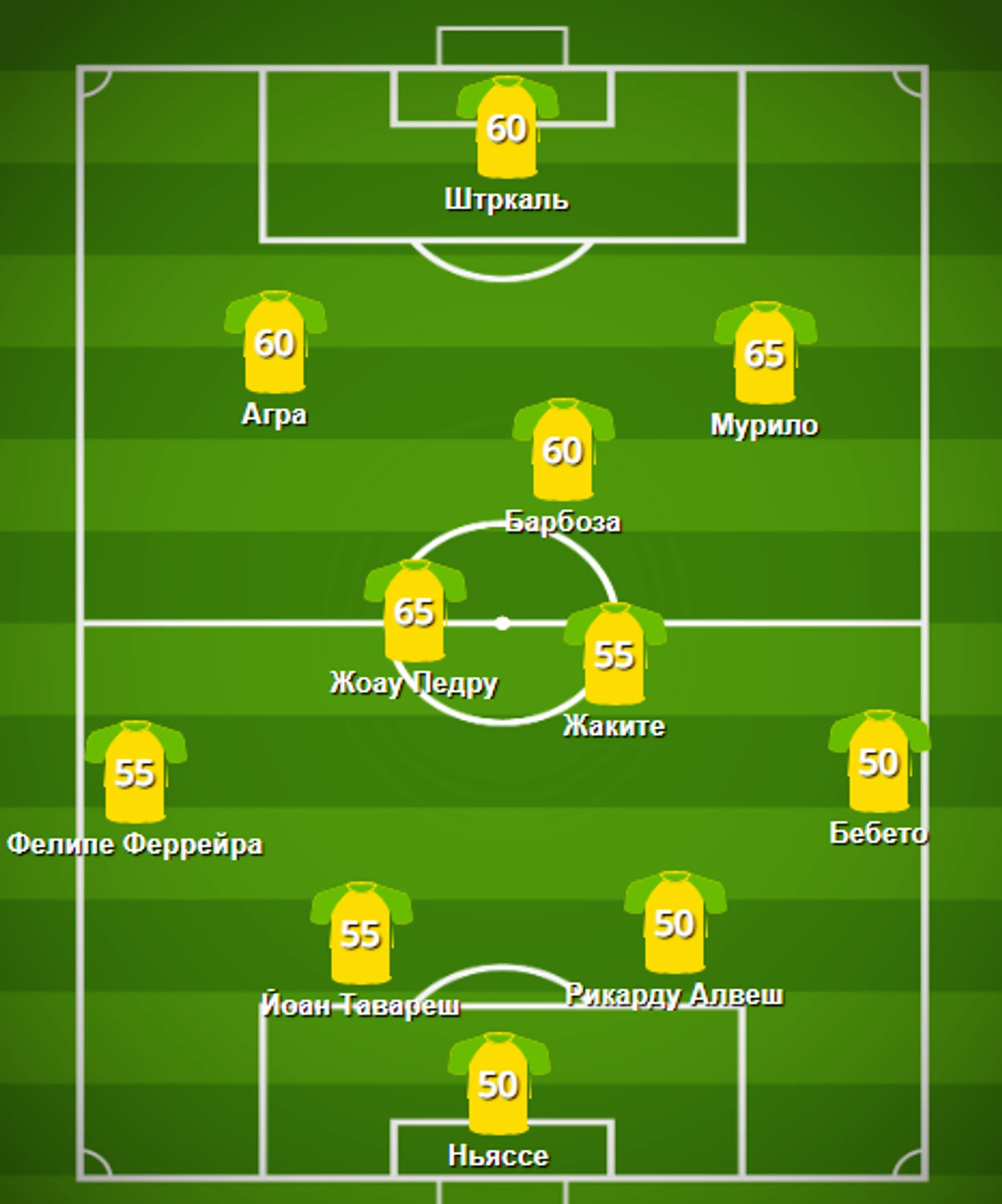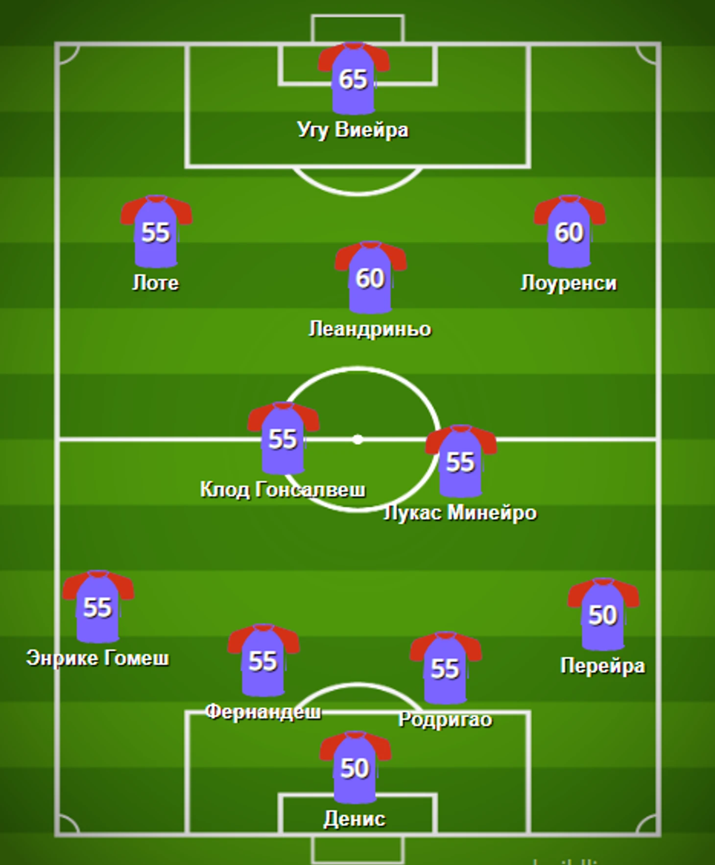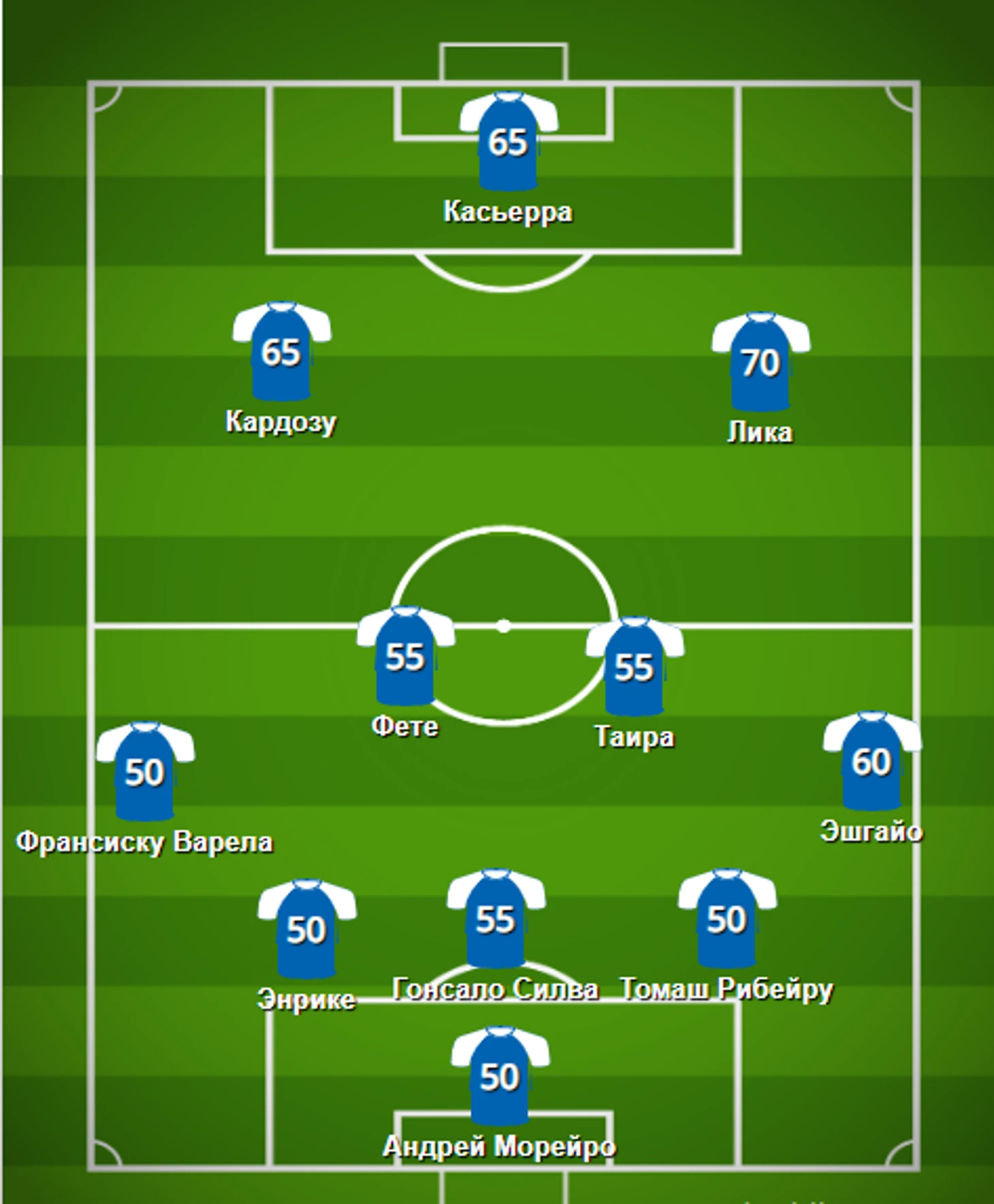 Есть тренер не решился менять наигранную схему в три центральных, ими станут: уверенный игрок старта того сезона Томаш Рибейру (5.0), капитан Гонсало Силва (5.5) и главное достижение трансферной кампании в лице многоопытного Энрике (5.0).