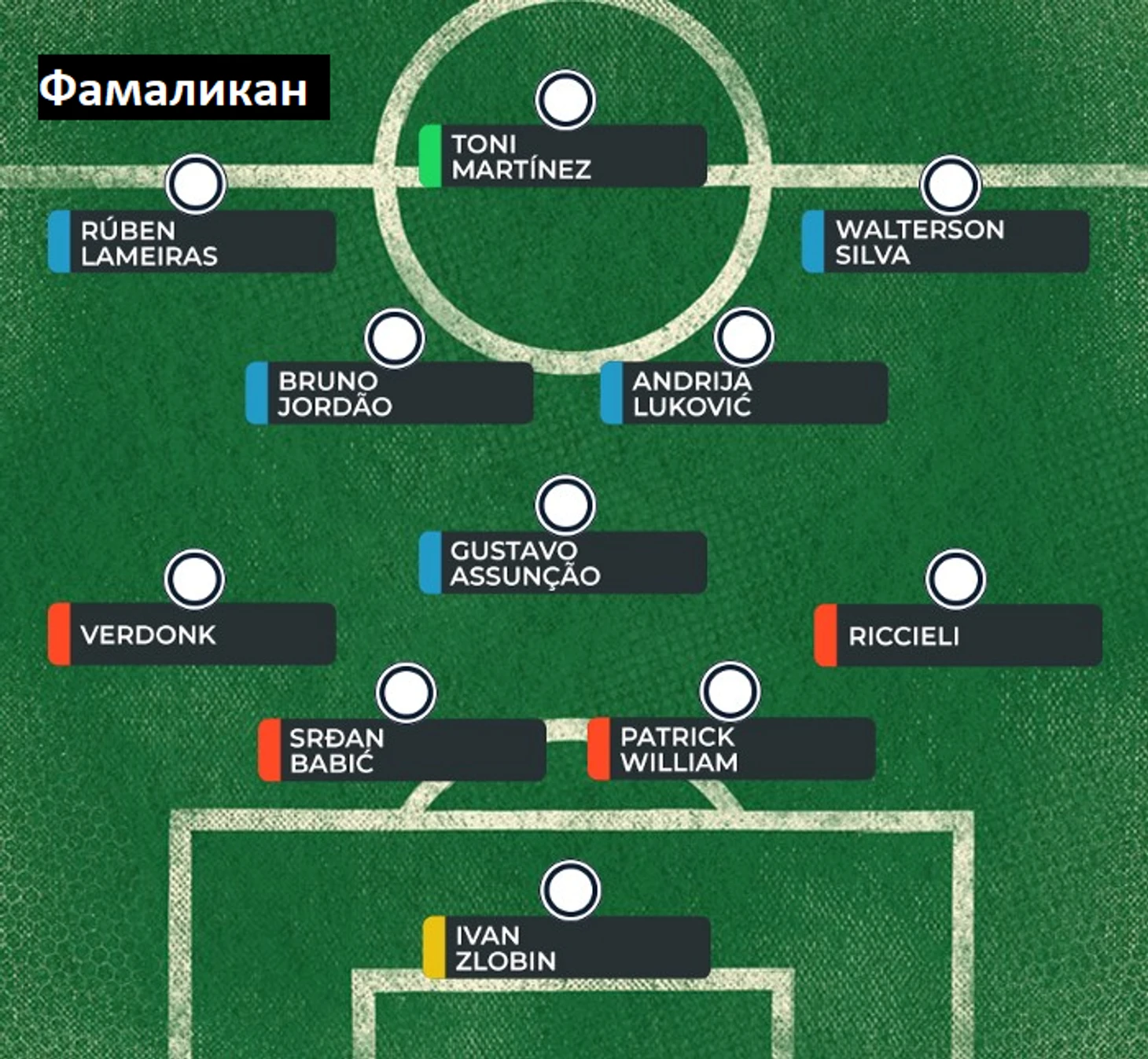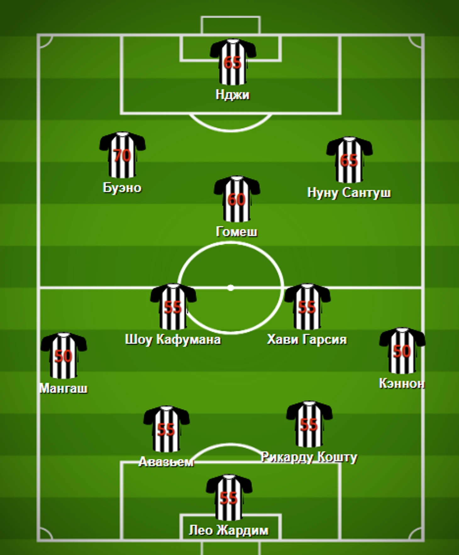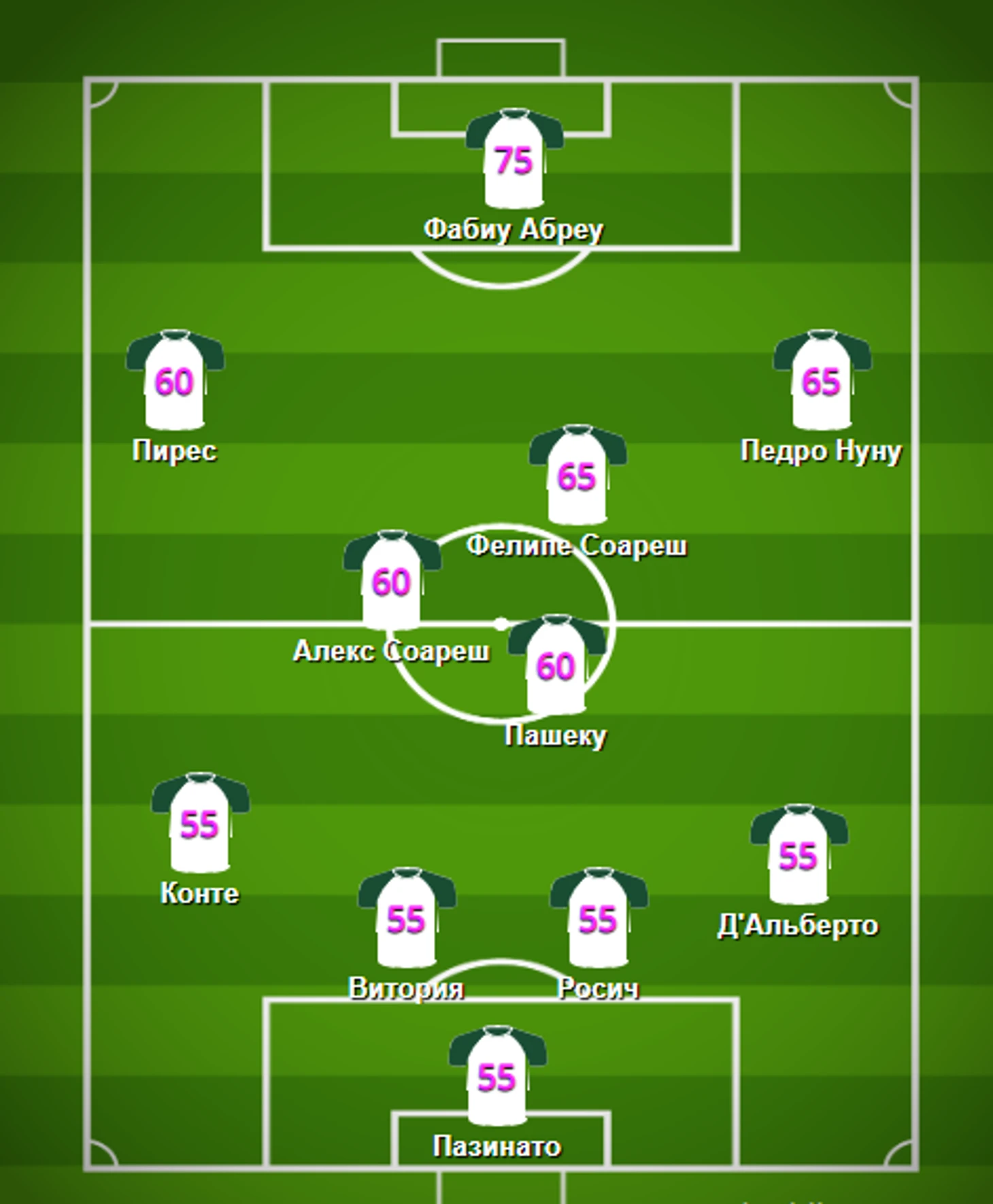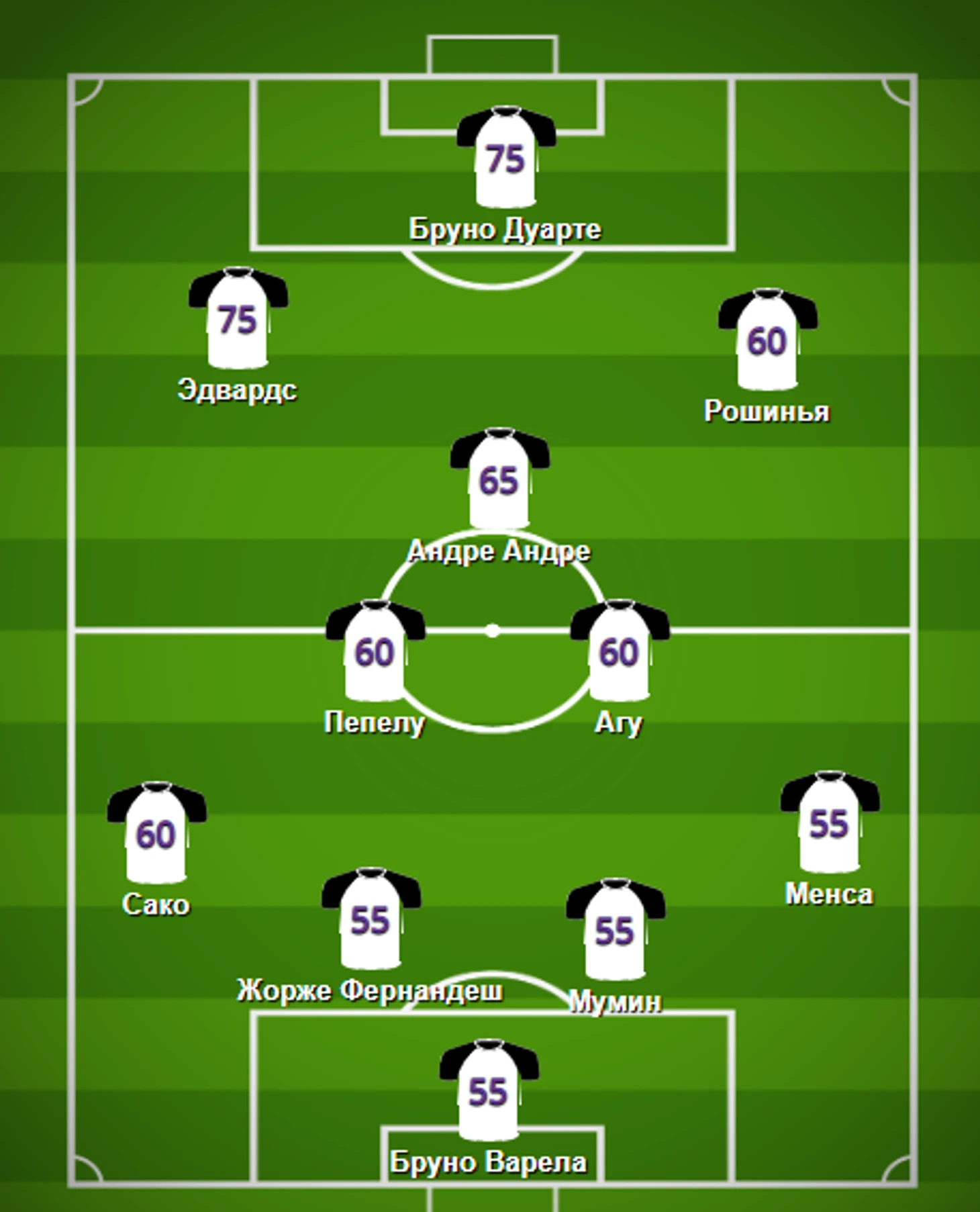 Есть тренер не решился менять наигранную схему в три центральных, ими станут: уверенный игрок старта того сезона Томаш Рибейру (5.0), капитан Гонсало Силва (5.5) и главное достижение трансферной кампании в лице многоопытного Энрике (5.0).