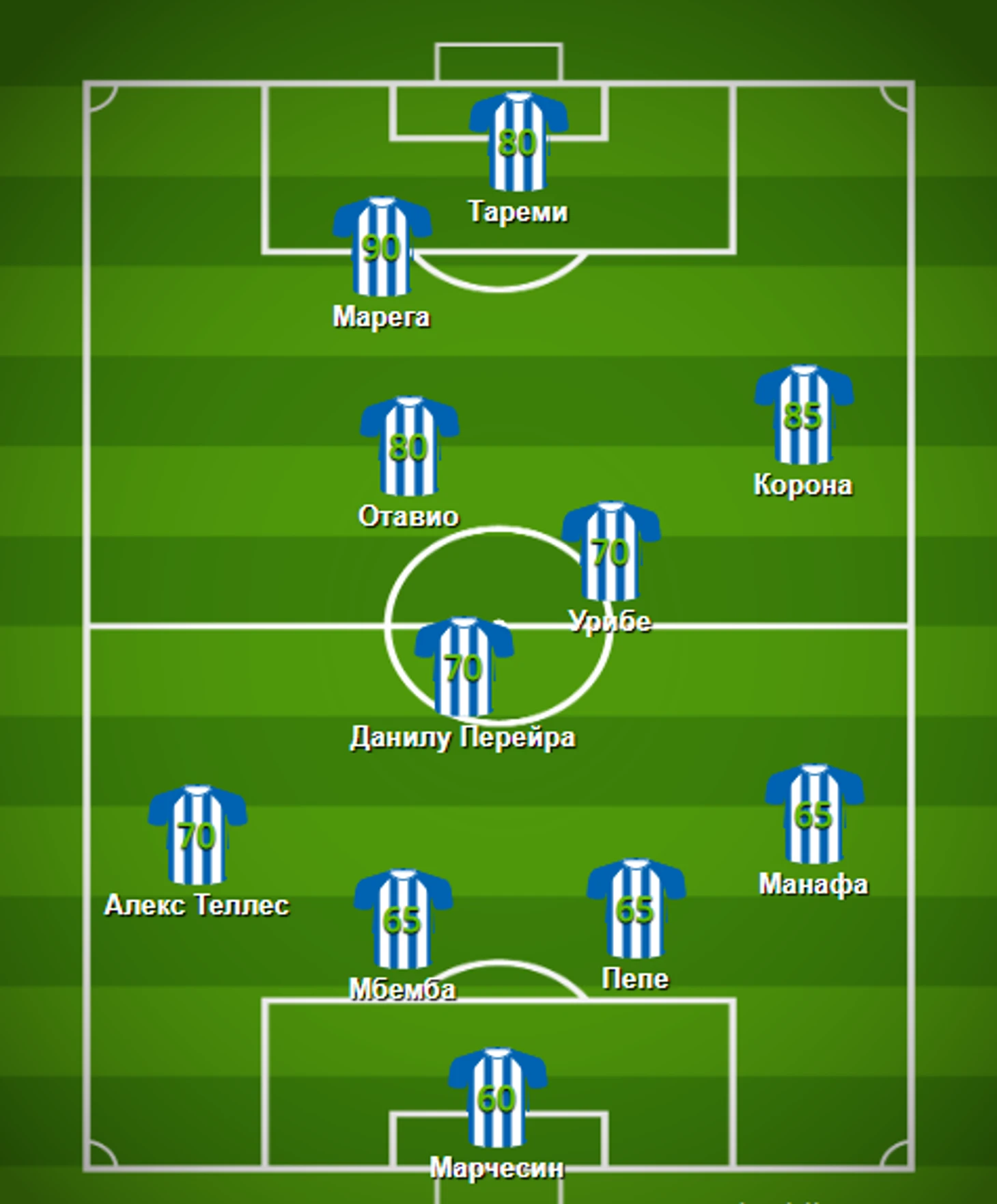 Хесус Корона (8.5) собрал в том сезоне аж 4+14. И это при том, что некоторые матчи начинал защитником. Очень хорош был и Отавио (8.0). Он и атакующий полузащитник и с правого края сыграть тоже может. У него 2+10. Мусса Марега (9.0) привык играть форварда в оттяжке, хотя по необходимости и по краям смещается. Его показатель 12+7. И как всё-таки здорово, что на левом фланге есть готовый бегать туда-обратно Теллес! Думаю, именно он и решит проблему левого фланга. Осталось узнать центрфорварда.
