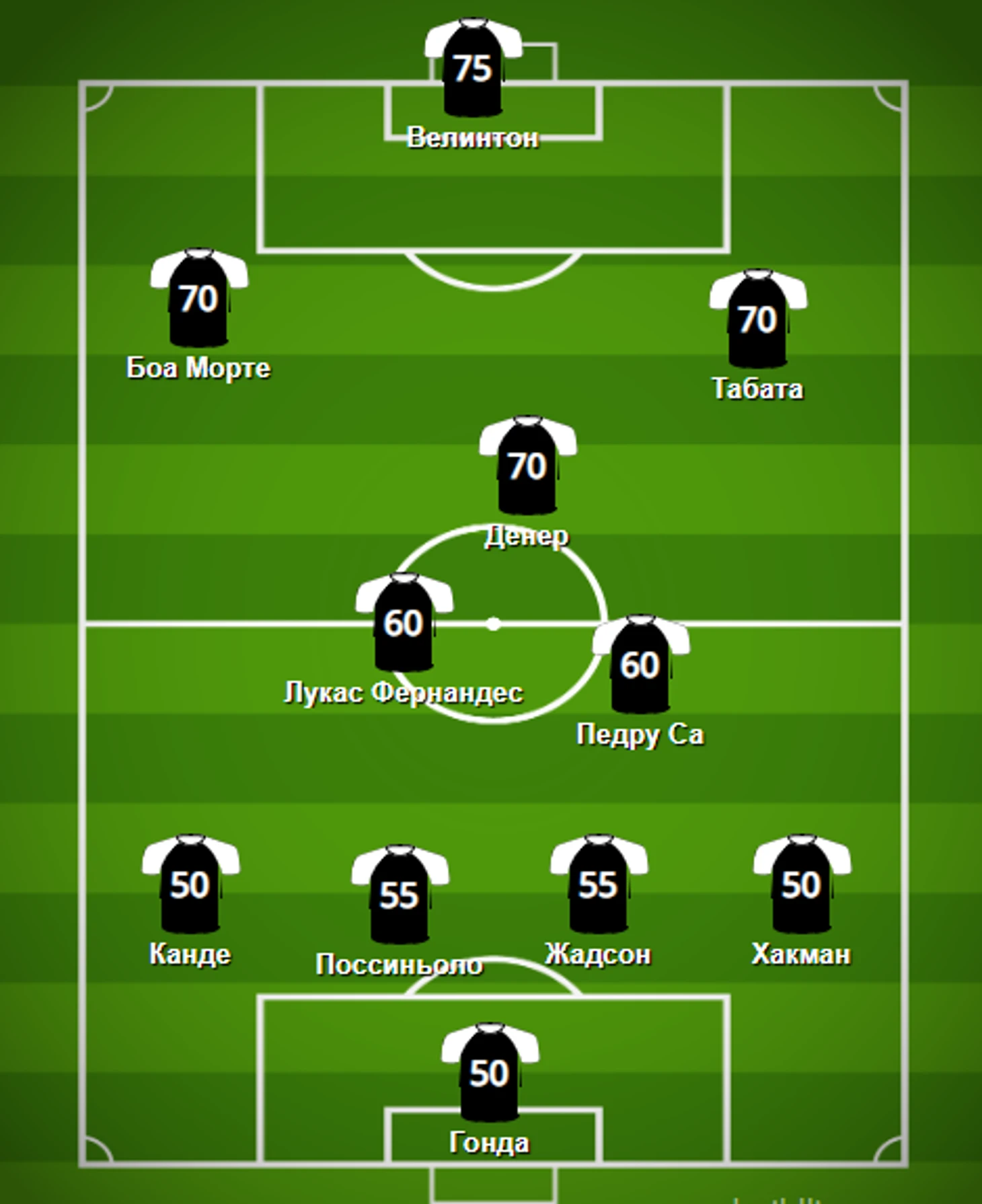 Тем не менее, вероятнее всего появление Велинтона вместо центрфорварда. Здесь предстоит конкуренция с Фабрисио (6.0), но есть ощущение, что тренер взял его скорее как игрока ближайшего запаса.