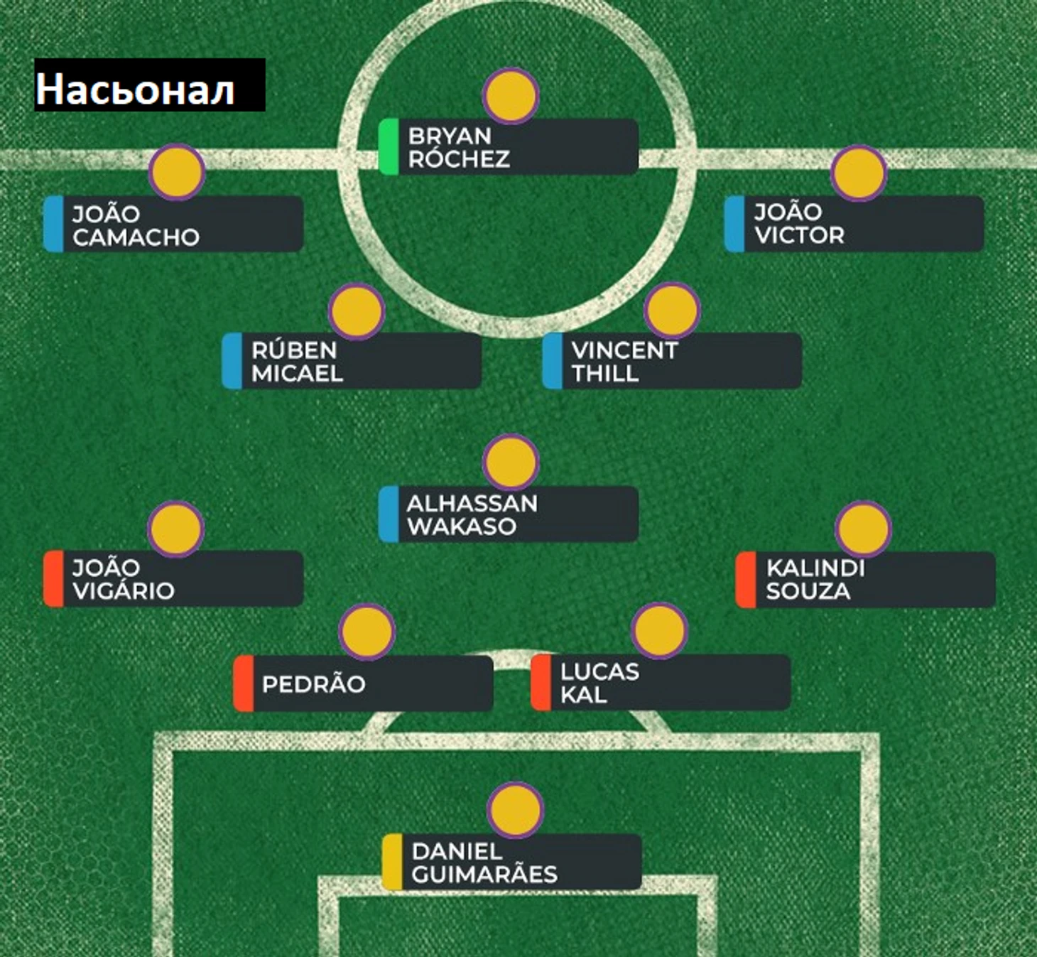 Насьонал: Рочез, Рочез, Калинди, Витор Гонсалвеш, Жоао Камашу