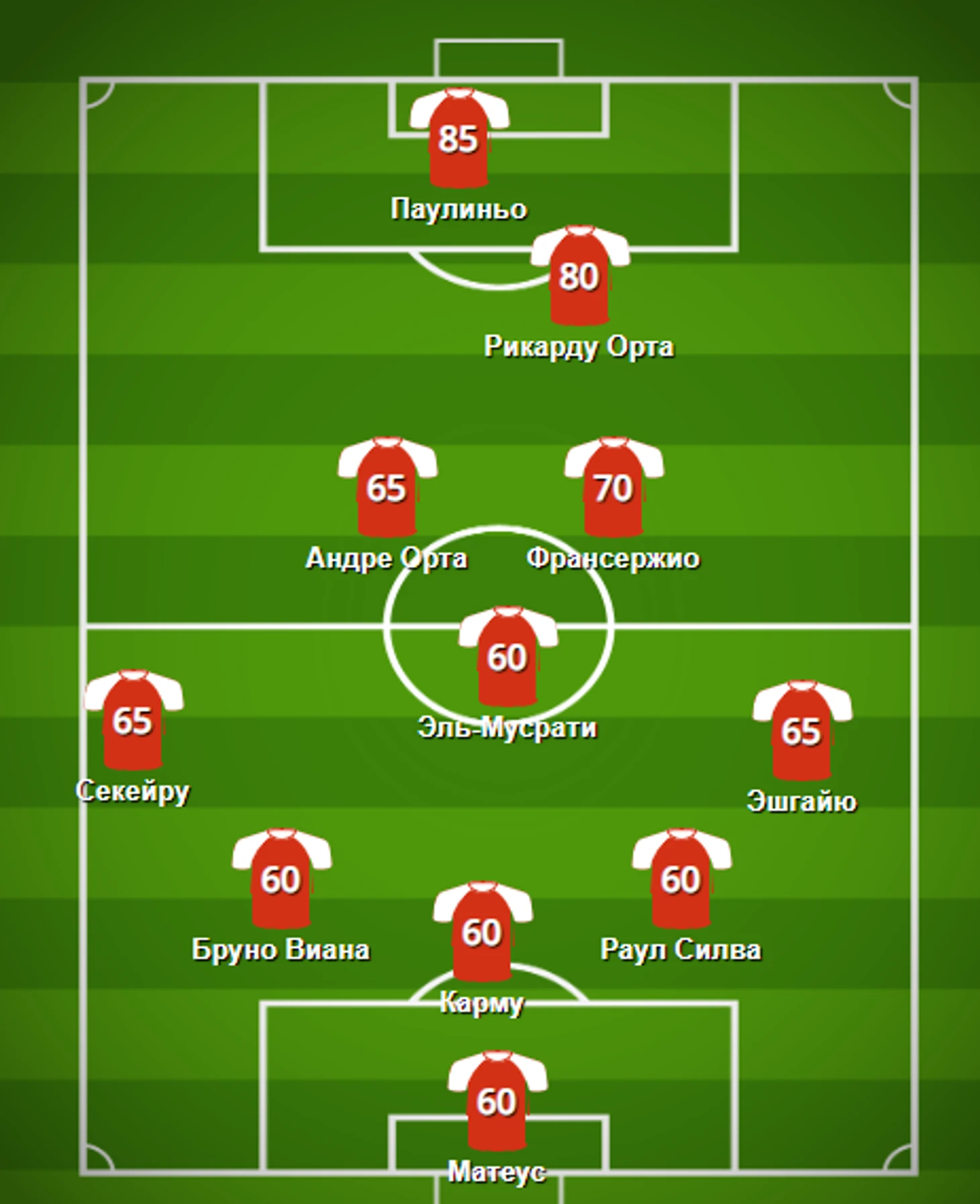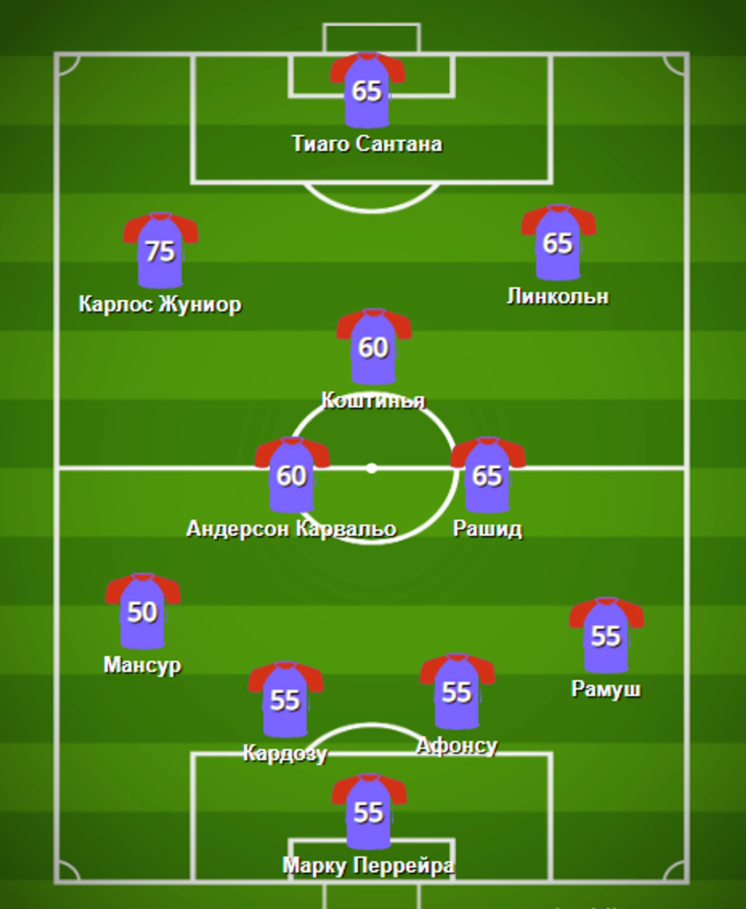 По краям всё очень сложно. Карты спутал пришедший в клуб Велинтон (7.5). В том году за Авеш он накидал 7+4. И играть в атаке способен практически на любой позиции. Как ни странно, но меньше всего должен бояться другой номинально правый вингер Табата (7.0). Его 1+10 прошлого сезона заслуживают внимание. В том числе и тренерского. Аилтон Боа Морте (7.0) в том сезоне сделал 4+5 и тоже является ценным активом. Но куда-то же упихать новичка надо.