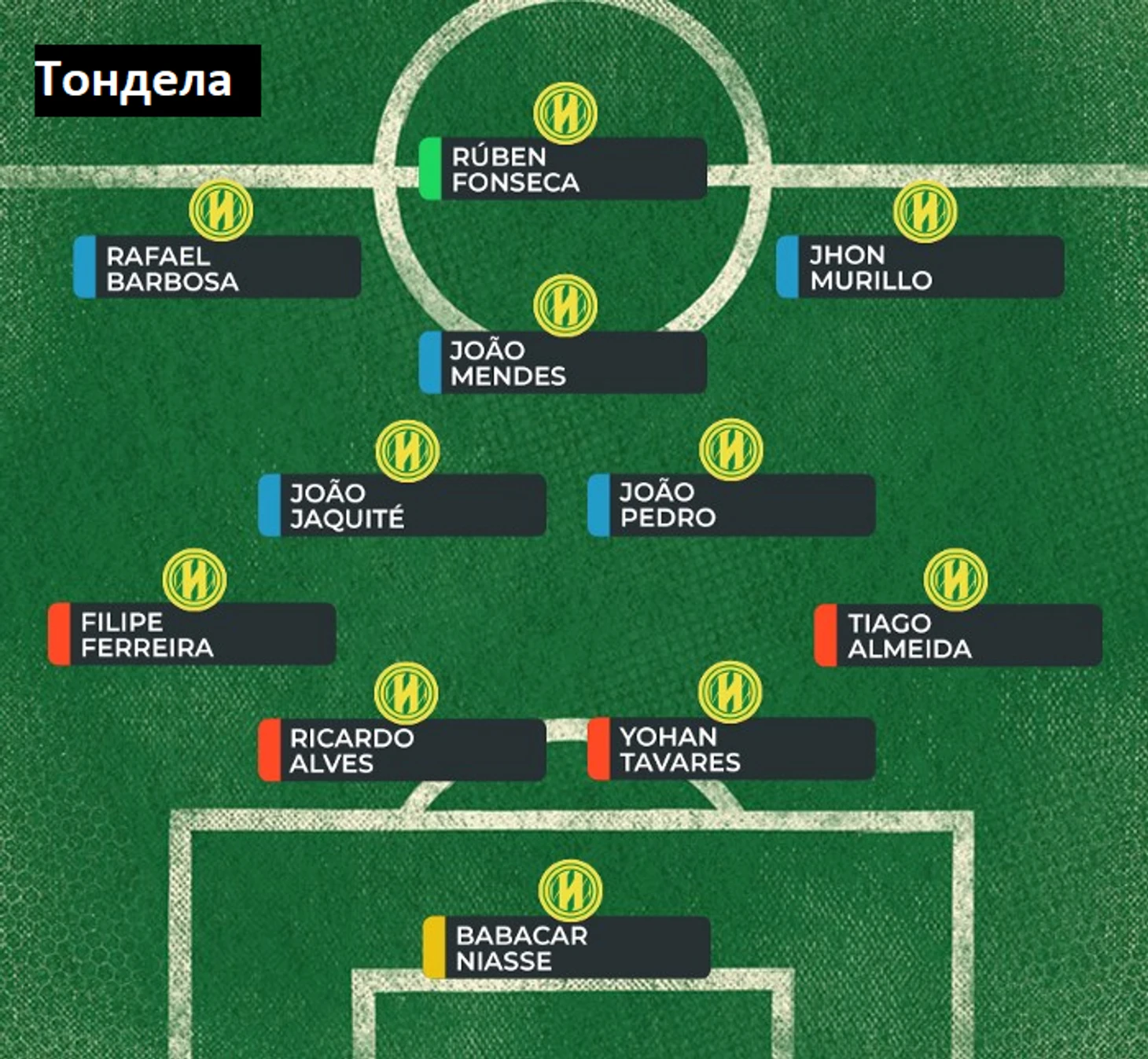 Тондела: Пепелу, Жоао Педро, Ронан, Жоао Педро, Жоао Педро