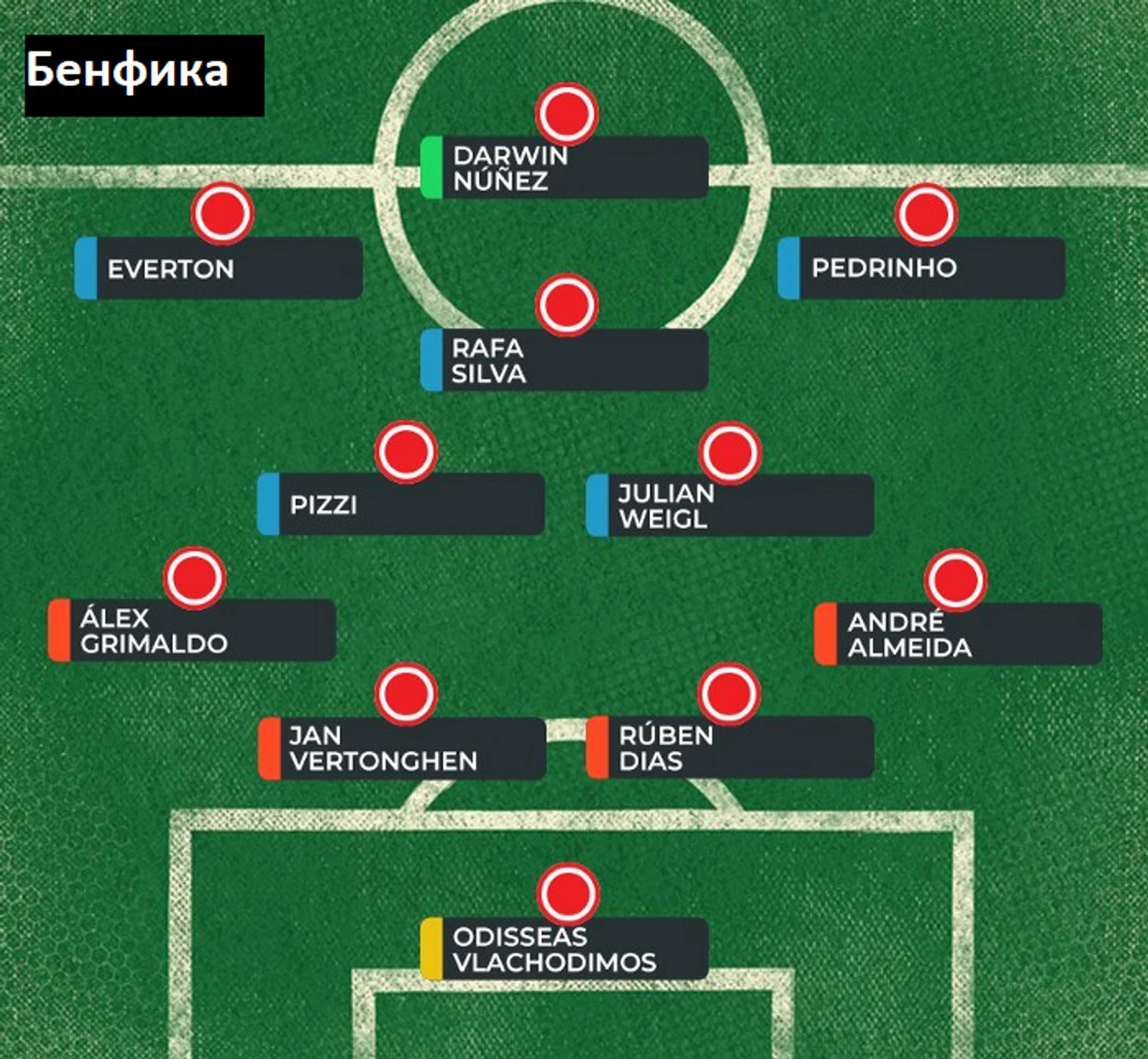 Бенфика: Пицци, Пицци, Винисиус, Пицци, Пицци