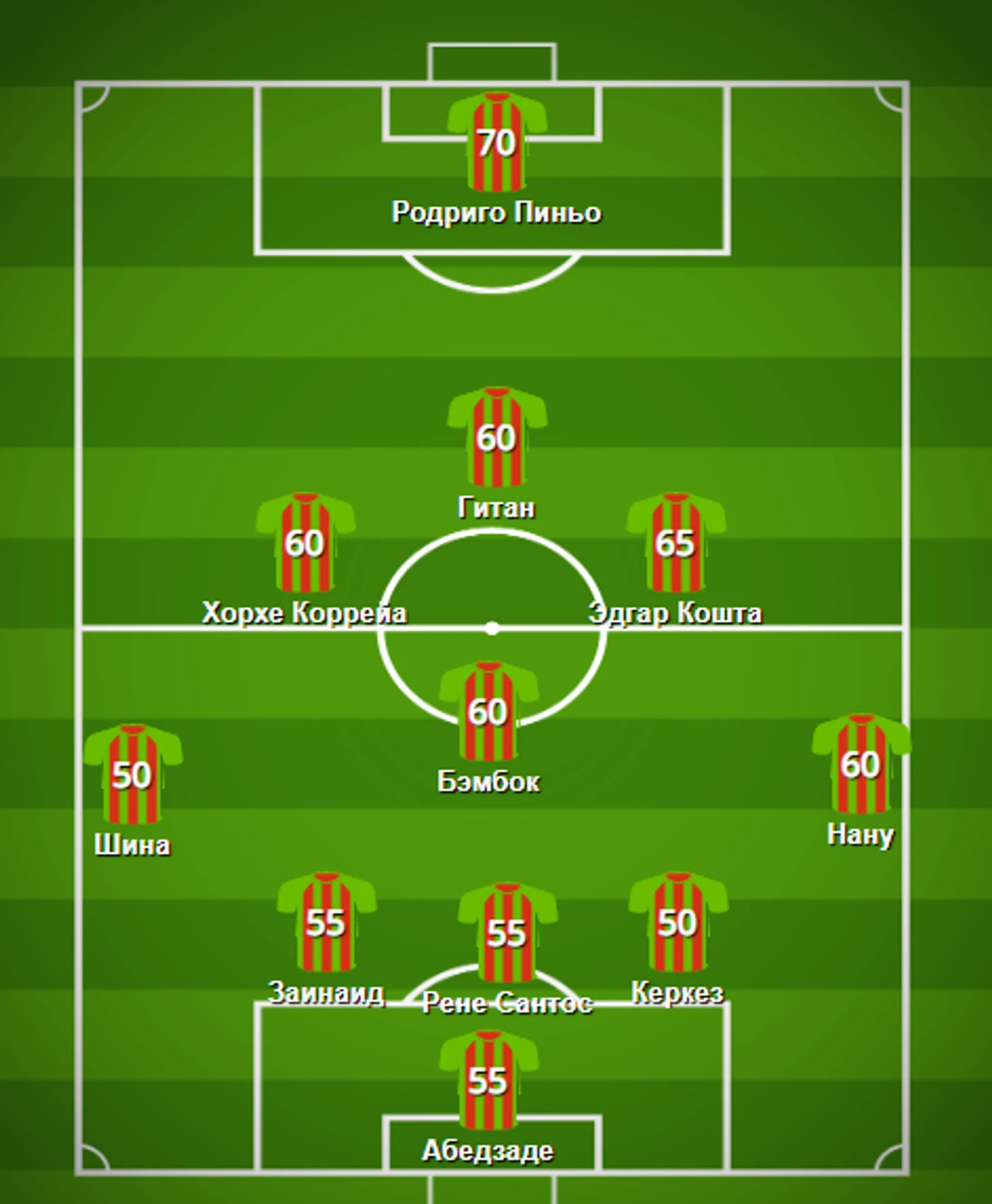Справа мог бы играть тот самый Тилль, но вероятнее появление люксембуржца в роли атакующего полузащитника, а на позиции правого вингера Жоао Камашу (6.5). В прошлом сезоне за ним 6+3 в ЛигеПро. А главное в позапрошлом в элите примерно такие же показатели. Слева сложнее, чистого левого вингера нет. Тут может быть как правый винг Арабидзе (6.0), так и нападающий Риаскос (6.5). При этом клуб вполне может вообще всё переиграть и уйти в подобие схемы 4-4-2 с двумя форвардами.