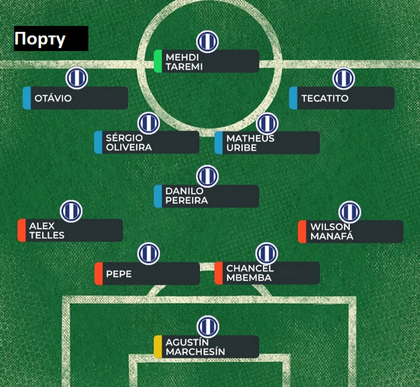 Порту: Теллес, Виейра, Теллес, Оливейра, Теллес