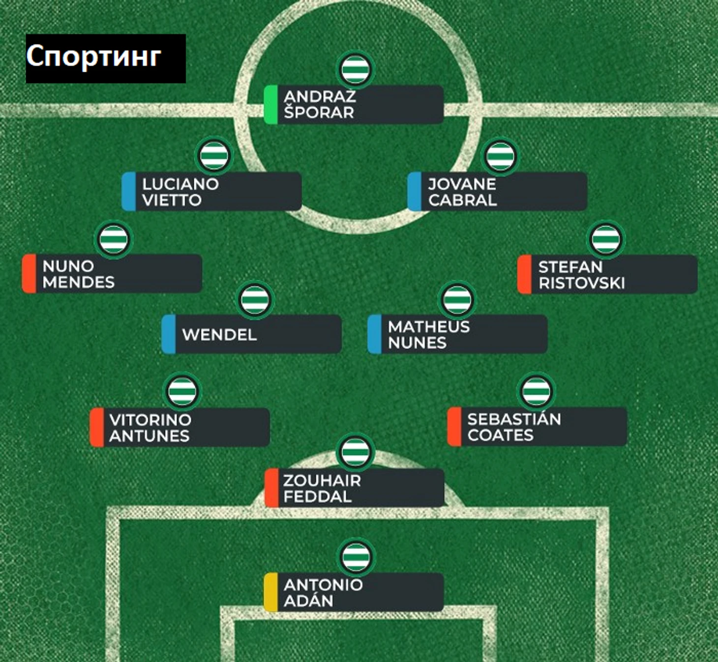 Спортинг: Кабрал, Шпорар, Вьетто, Кабрал, Фернандеш