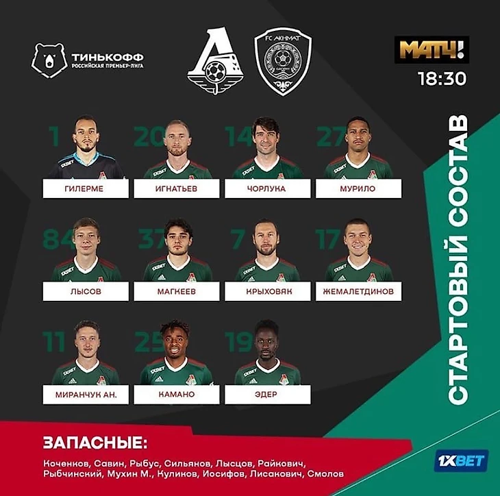 1. Очень удивил стартовый состав команды, здесь нашлось место Лысову, Камано, Эдеру, Жемалетдинову.