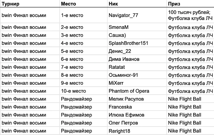 Итоги Fantasy bwin «Финал восьми»! Поздравляем победителей