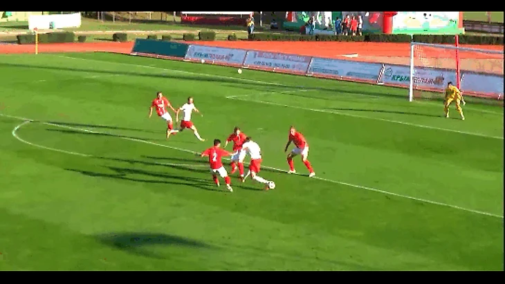 Индивидуальными усилиями свих бойцов c мощью беларускага омона Кызылташ создает первый момент в матче