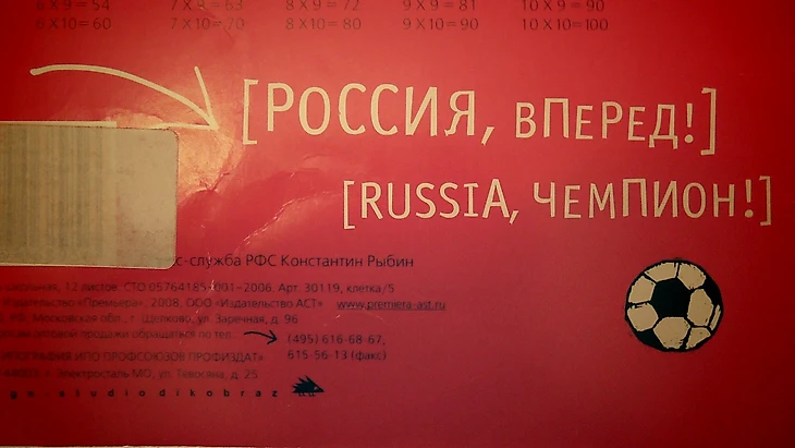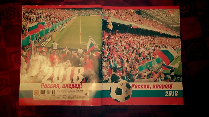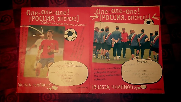 С намеком на 2018-й год, да-да. Я только сейчас идентифицировал матч, с которого взято фото – это матч против греков на Евро-2008. Хотя я долгое время думал, что это с четвертьфинала против голландцев… Но там, если присмотреться, видны греческие флаги. Само по себе единение фанатов выглядит классно, поэтому я, похоже, и взял эту тетрадь. Вот было что-то такое на том Евро, чего не было на домашнем ЧМ…