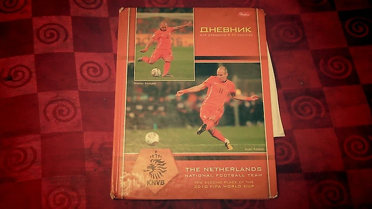 Я был и остаюсь фанатом сборной Нидерландов, а мой любимый игрок – Арьен Роббен. Поэтому увидев эту обложку с Арьеном, я наплевал на все и попросил купить именно этот дневник. Это был первый мой осознанный выбор, а покупал я его не на школьном базаре, а в канцелярском магазине. Но принцип тот же – перебираешь все, пока не находишь тот, что нужен.