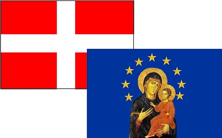 Савойская династия, занявшая трон объединенной Италии в 1861 году, существовала и славилась в Европе задолго до наполеоновских преобразований. Амедей VI, граф Савойский, в 1366 году отправился в крестовый поход против турок, на своей галере помимо флага Савойи, граф поднял и специальный флаг, подчеркивающий святость военного предприятия - синее полотнище с образом Богородицы, окруженным звездами и надписью "Maria Santissima, aiuto dei cristiani”.
