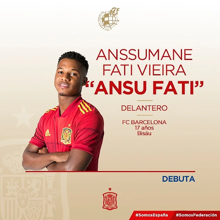 Официальный твиттер-аккаунт сборной Испании сообщает о том, что Фати, вышедший в матче против сборной Германии, стал 800-м игроком за всю историю главной испанской команды.