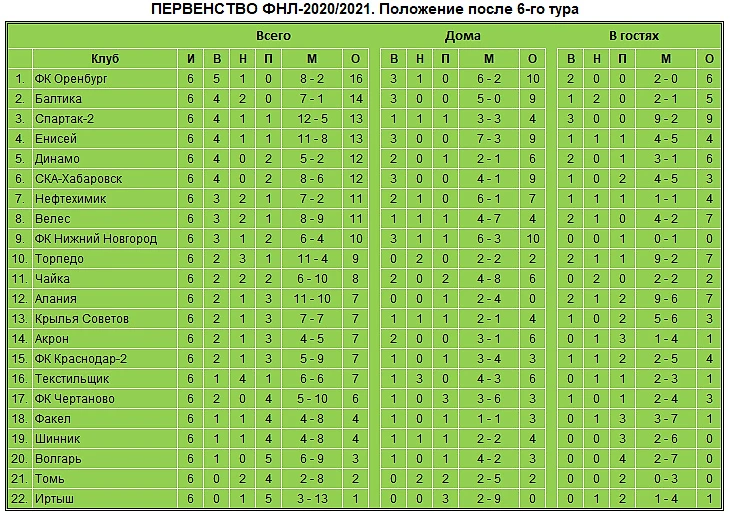 ● «Оренбург» из 7 последних матчей выиграл 6 и 1 сыграл вничью.