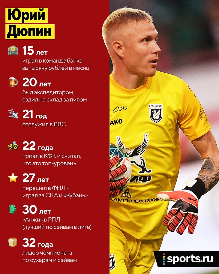 В 22 года Дюпин впервые оказался в КФК и считал, что это топ-уровень. Там ему все начали говорить, что он минимум вратарь уровня ФНЛ.