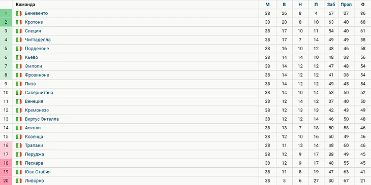 Когда я сказал «триумфальный сезон», это было не преувеличением: южные ребята в ярких желто-красных футболках стали безоговорочными чемпионами, из 38 матчей выиграв 26 и проиграв всего 4. Футболисты «Беневенто» показали лучшую разницу по забитым-пропущенным мячам (+40), став самой забивающей и мало пропускающей командой сезона (67 и 27 мячей соответственно). При таких показателях неудивительно, что клуб заработал путевку в высший дивизион еще за 7 туров до окончания сезона.