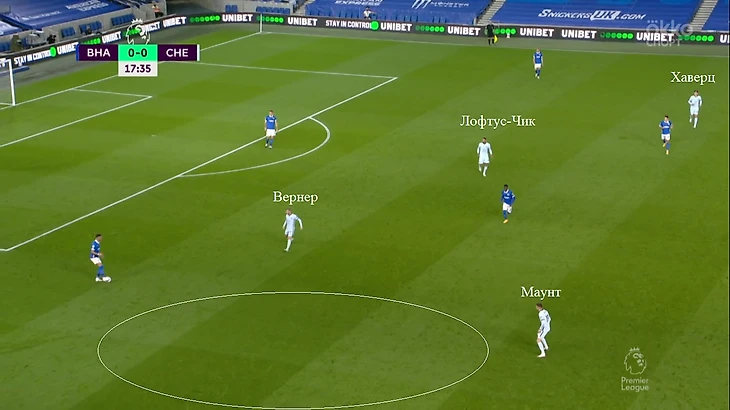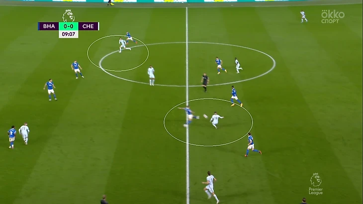 Главный тренер «Брайтона» Грэм Поттер прививает команде комбинационный футбол. Игроки очень часто разыгрывали мяч у своих ворот. Такой стиль игры привел к преимуществу во владении мячом (52% на 48%), что давало возможность «Челси» чаще прессинговать. Поэтому выбор новой схемы вполне оправдан.