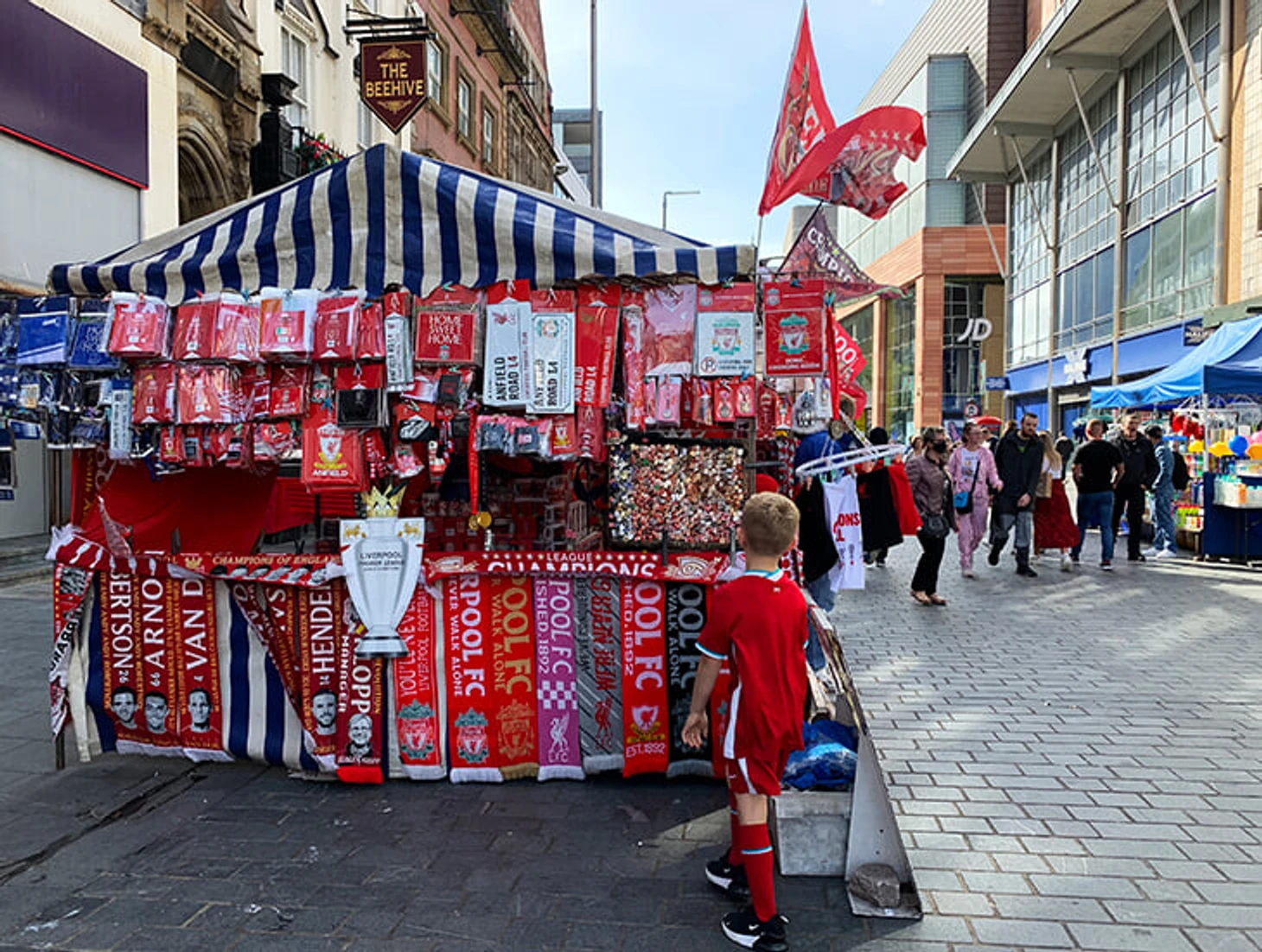 Первый уикэнд АПЛ совпал с английским бабьим летом. Кажется, впервые за пять лет поездок в Ливерпуль мне пришлось доставать солнечные очки, а все скаузеры высыпали в центр города, и многие – в футбольных майках. Большинство праздновали возвращение футбола новой формой «Ливерпуля», но за пару часов я наткнулась на одного фаната «Арсенала» и смущенного мальчика в форме «Эвертона».