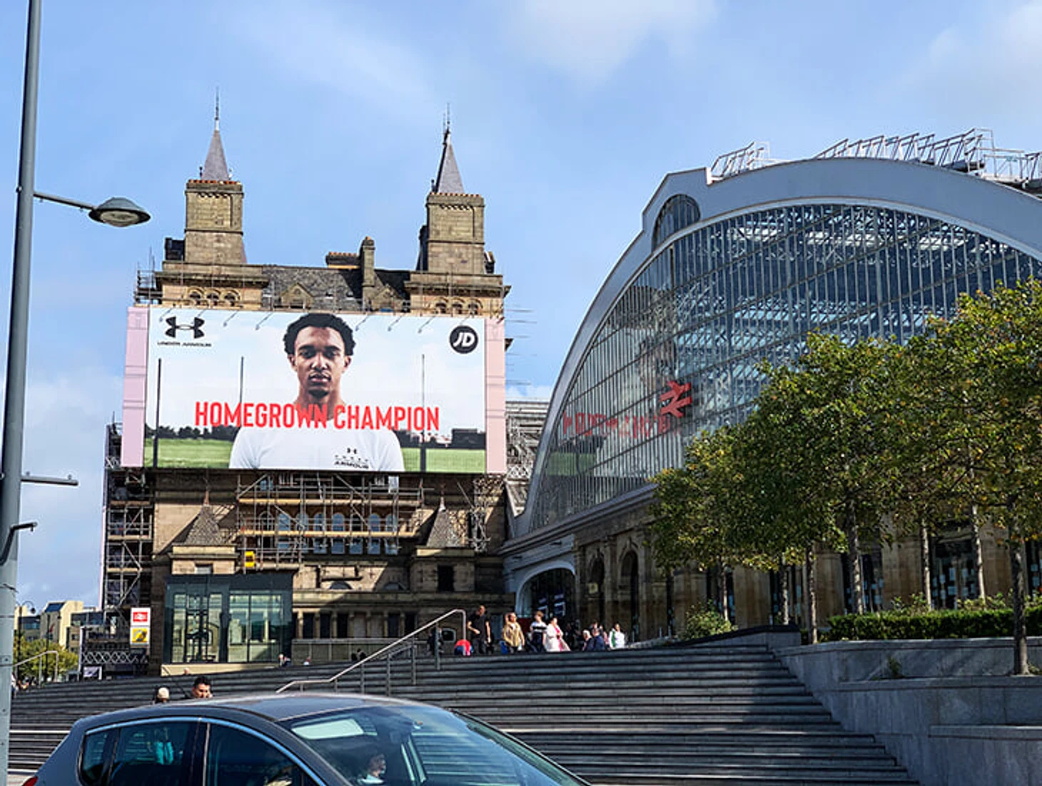 Первое, что встречает вас в Ливерпуле – огромный плакат Трента Александер-Арнолда прямо у выхода с вокзала.