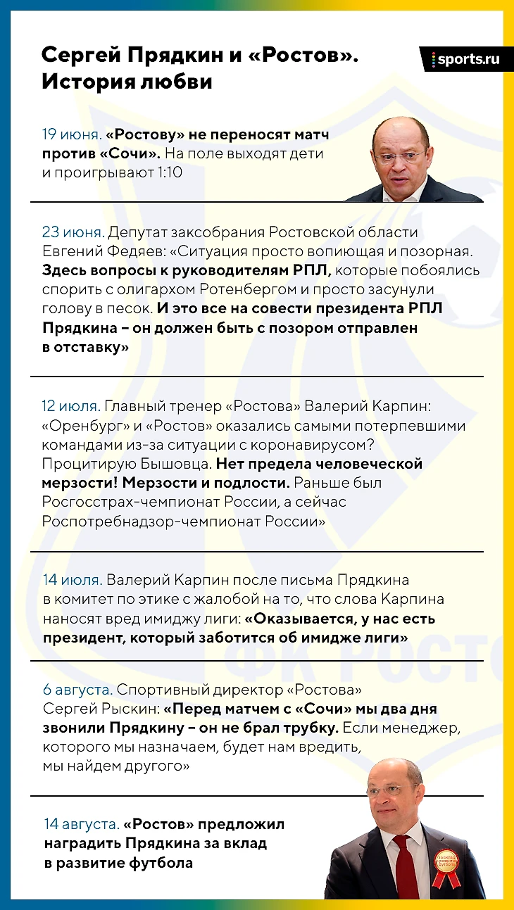 Это сложно воспринимать серьезно – клуб и глава Премьер-лиги воевали все лето (да и сейчас не помирились). Просто напомним, что говорили представители «Ростова» про Прядкина.