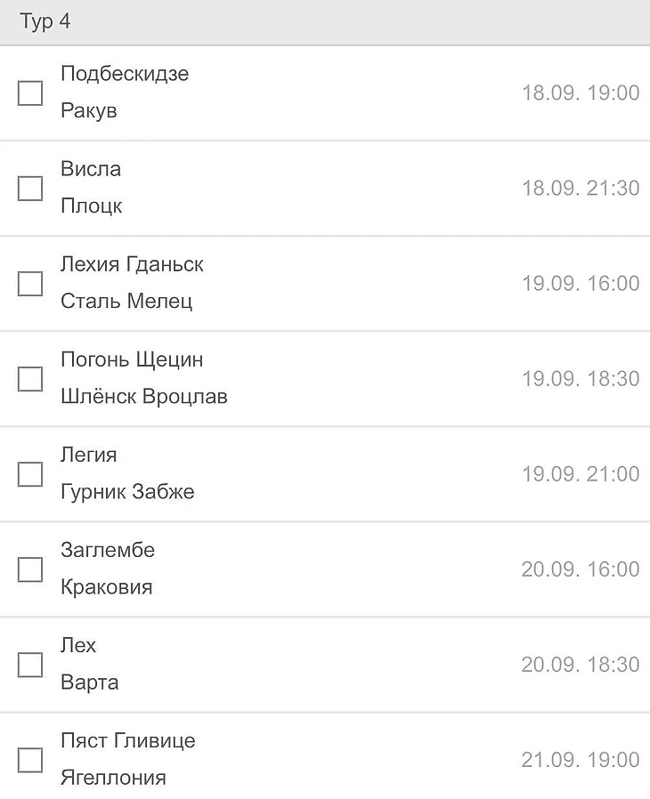 "Легия" на классе разобралась с "Вислой Плоцк". Единственное взятие ворот на счету Томаша Пекхарта, который забил все голы варшавян в Экстраклассе в этом сезоне! Страшно подумать, что будет, выпади чешский полузащитник из-за травмы или дисквалификации. "Погонь Щецин" расписала мировую с краковской "Вислой" (2:2). Для Рафала Богуского это шестнадцатый сезон подряд в Экстраклассе и 14 в составе "Вислы". "Ракув" одолел "Заглембе" со счётом 2:1. Первый гол был забит уже на 1 минуте (Владиславс Гутковскис). Евгений Башкиров был заменён на 77 минуте, а вышедший вместо него Якуб Беднарчек в возрасте 21 года дебютировал в Экстраклассе. Удачи!