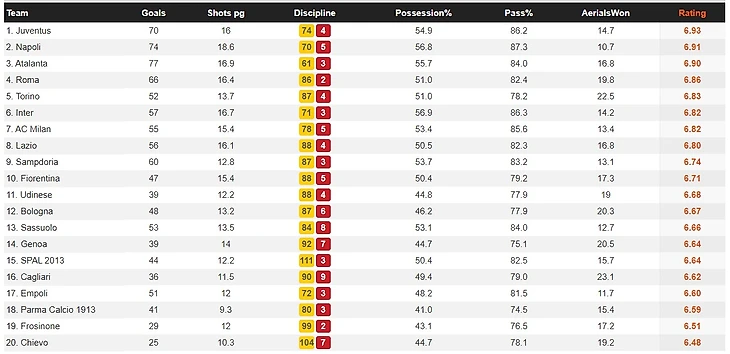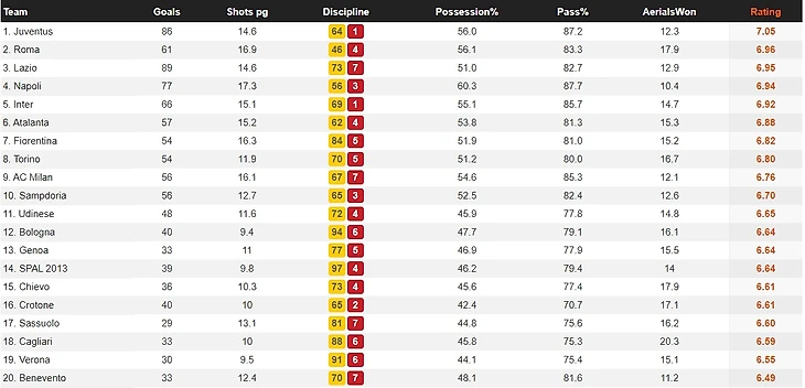 Концовка прошлого сезона показала, что Ювентус не способен больше единолично доминировать в каждом матче. В 5 матчах с командами из первой восьмерки "старая синьора" набрала лишь 4 очка, а также провалила финал кубка Италии против Наполи и матч 1/8 финала ЛЧ против Лиона. И дело далеко не только в Сарри. Очевидно, что команде необходима перестройка. Можно проследить изменения показателей команды, начиная с сезона 2017/2018.