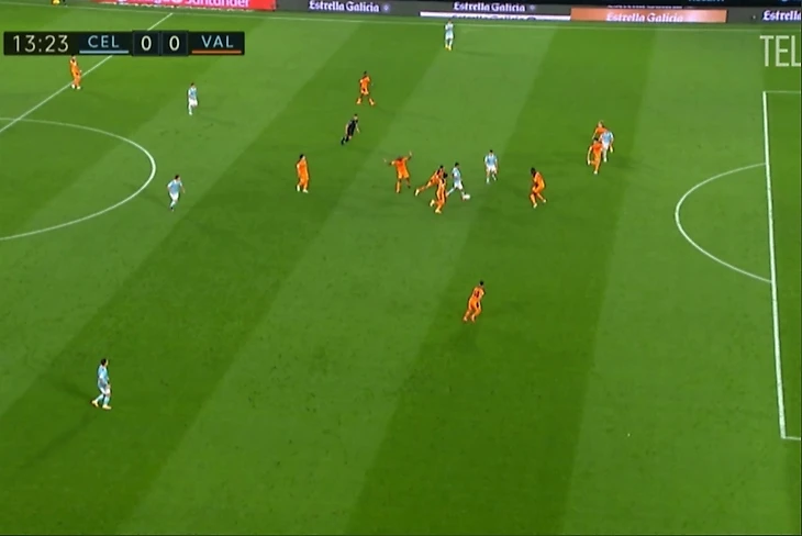 Бывшая команда Федора Смолова забила уже на 13-й минуте: Нолито шикарно разрезал защиту соперника пасом из глубины, Яго Аспас оббежал вратаря и покатил в пустые ворота. Но вопросы возникли у защитников «Валенсии» и судей – момент на предмет офсайда изучал ВАР. Причем помощник арбитра поднял флажок сразу после гола, Нолито с сомнением посмотрел его в сторону и помотал головой.