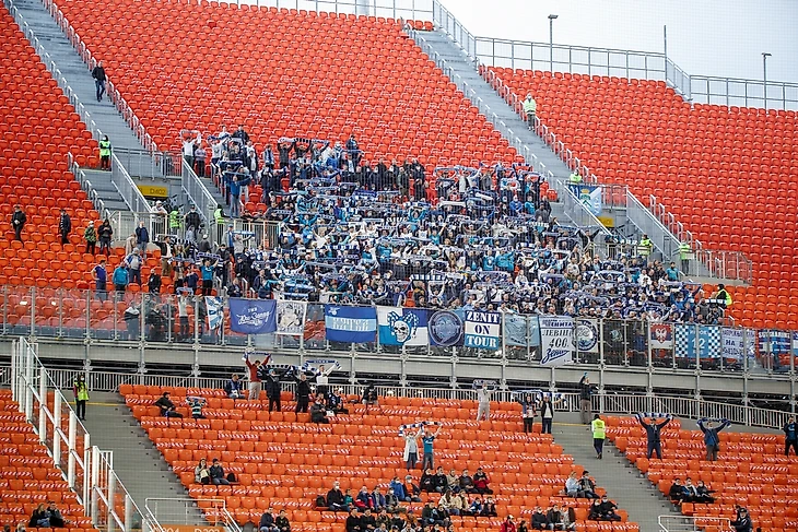 Атмосфера возле арены и в чаше стадиона была очень дружелюбной, болельщики обеих команд стояли вместе в очередях, сидели на соседних местах и даже делали совместные фотографии. А фанаты «Зенита» сразу после стартового свистка очень красиво и душевно затянули песню.