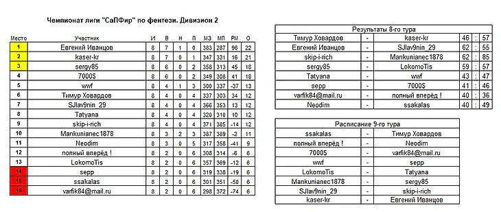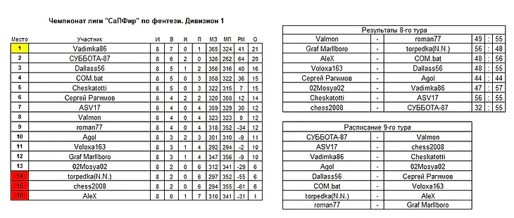 В рамках 8-го тура РПЛ состоялись матчи восьмого тура чемпионата лиги "СаПФир" по фентези