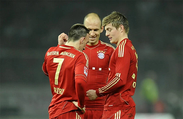 Позже Де Пена все равно забил. А этот момент напомнил, пожалуй, самый известный розыгрыш штрафного в камень-ножницы-бумагу – Тони Крооса и Франка Рибери под надзором Арьена Роббена.