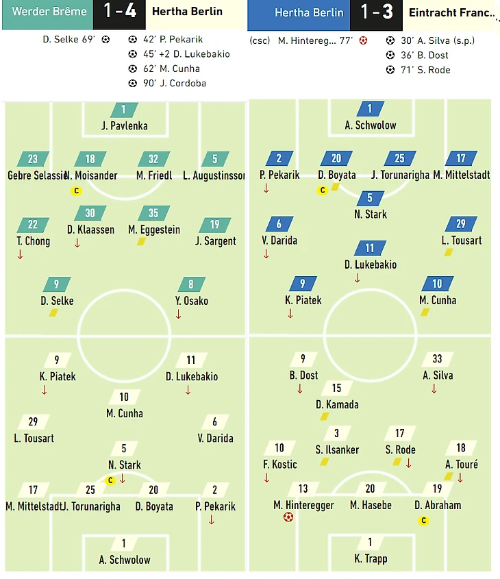 «Герта» в первом и во втором турах. Что делает «Айнтрахт», чего не делает «Вердер»