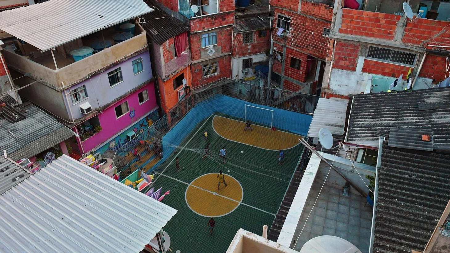 Пространство священно в тесноте между строениями лачуг, поэтому каждый свободный двор отдан на откуп футболу. С каждого мини-поля открывается величественный вид на стадион «Маракана», который постоянно напоминает о разорванной связи между государством и его самыми бедными жителями, блеск и нищета в одной картинке.