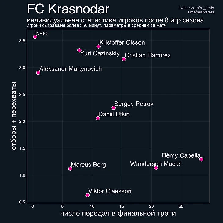 Статистика игроков Краснодара после 8ми игр сезона