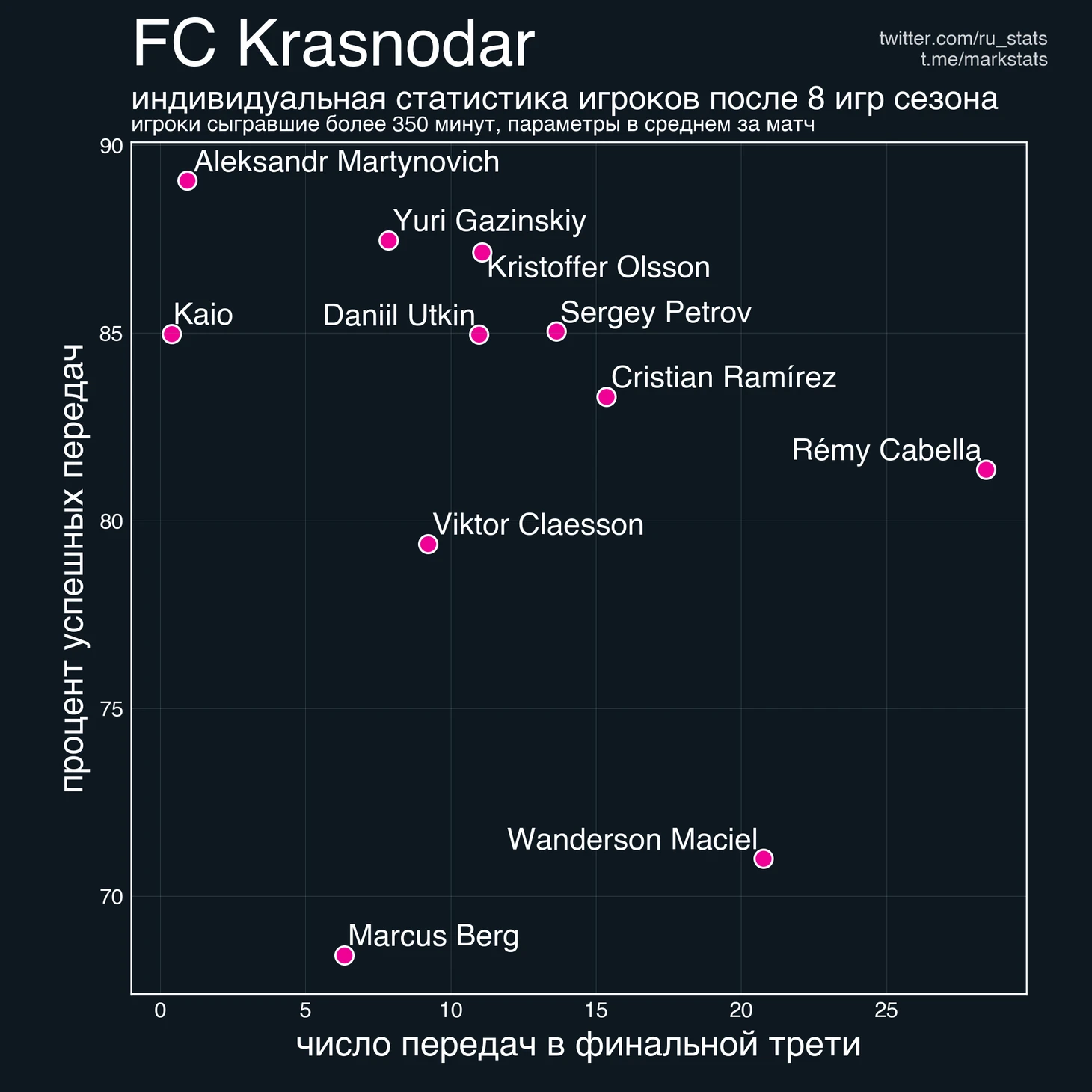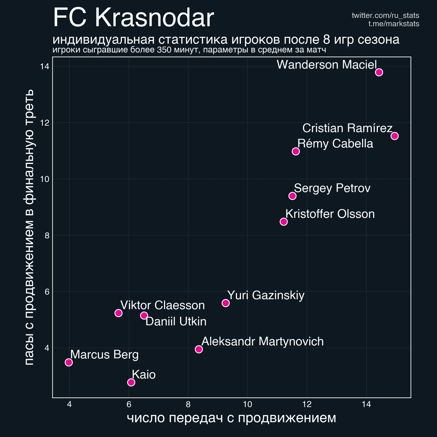 В нашем телеграм канале мы начали серию публикаций индивидуальной статистики игроков РПЛ.