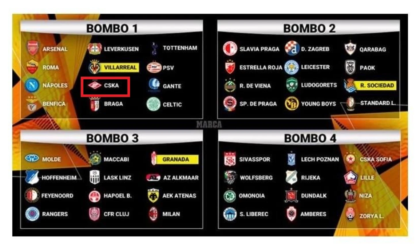 ЦСКА узнал соперников по Лиге Европы: сыграют с «Динамо» Загреб, «Фейеноордом» и «Вольфсбергом». Но по версии испанской газеты Marca, в ЛЕ сыграет другой клуб.