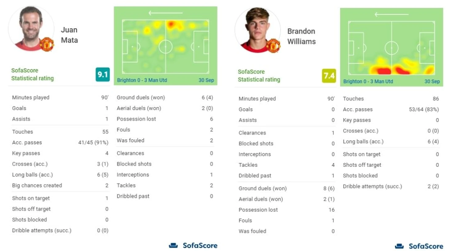 Дебют в старте на такой важной для нынешнего МЮ позиции. Каши не портил, но в игру был вовлечен не то чтобы мало, скорее точечно. Работа с мячом на топ-уровне. Минимальное количество потерь и брака. Тяготел к левому флангу, но покрывал все поле от штрафной до штрафной. Эстетский ассист Мате, и классная передача на Дало.