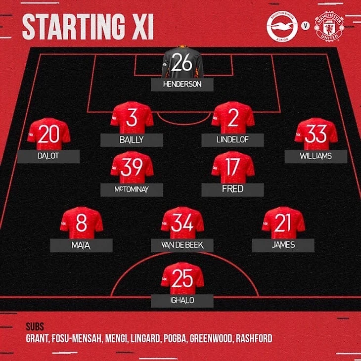 Состав Манчестер Юнайтед на матч с Брайтоном