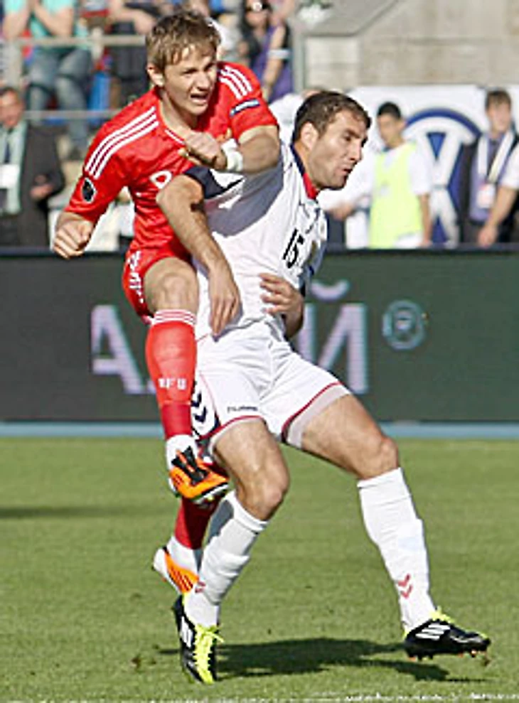 Роман Павлюченко оставался одним из ключевых игроков сборной. Он снова стал лучшим бомбардиром сборной. Уже на отборе на Евро-2012. Правда, в этот раз данное звание Роман разделил с Аланом Дзагоевым. Оба забили по 4 гола. Павлюченко отличился в матчах с Арменией (хет-трик, один с пенальти) и Андоррой, а Дзагоев - в матчах с Ирландией, Словакией и Андоррой (дубль). Согласимся, что у Дзагоева статистика посерьёзнее, чем у Павлюченко. В этот раз группа была легкой. Без серьезных проблем Россия вышла на Евро.