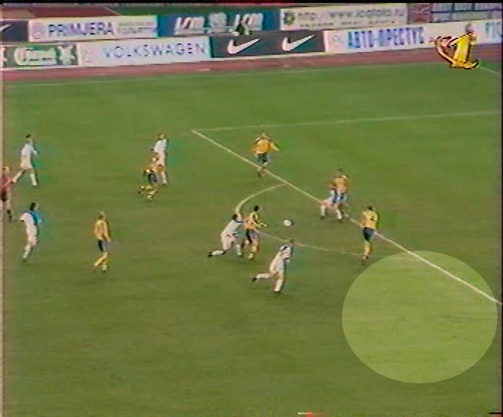 Основной вопрос – почему после перерыва Россия не перестроилась на фланговую игру. Если бы в 1999 году существовали Opta или InStat, мы бы увидели на тепловой карте, что сборная не вылезала с пятачка в 40-45 метрах от ворот, а фланги были бы абсолютно пустыми.