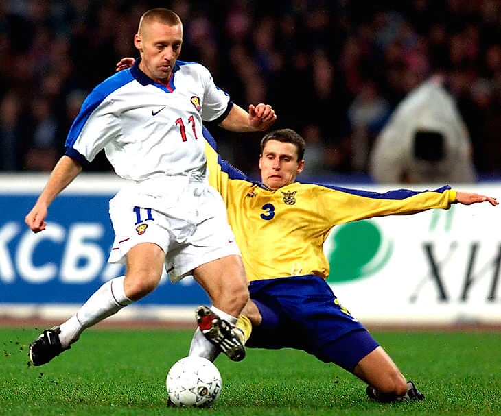 На 75-й минуте Валерий Карпин открыл счёт после штрафного удара. 88-я минута станет фатальной – Шевченко забил с 40 метров, не пустив Россию в Бельгию и Голландию.