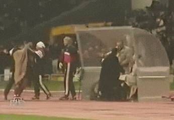 Победный гол Титова. Пока скамейка сходила с ума, Олег Иванович поправил плащ, застрявший под ногой.